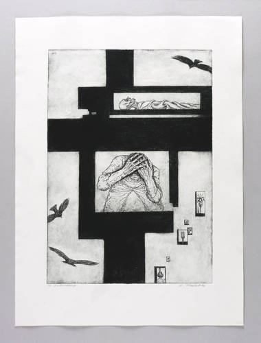 1988. Radierung / Strichätzung, in Schwarz, auf hellchamois Weißenborn. – Originale Künstlergrafik, von Helmut Maletzke. – Auflage Exemplar Nr. 15/20. – 51,6 x 36,3 cm (Darstellung / Platte), 68 x 51 cm (Blatt).