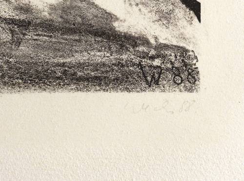 1988. Lithografie / Kreidelithografie, in Schwarz, auf chamois Bütten. – Originale Künstlergrafik, von Simone Wecks. – Auflage Exemplar Nr. 10/20. – 45,3 x 52,9 cm (Darstellung / Druckbild), 54 x 68 cm (Blatt).
