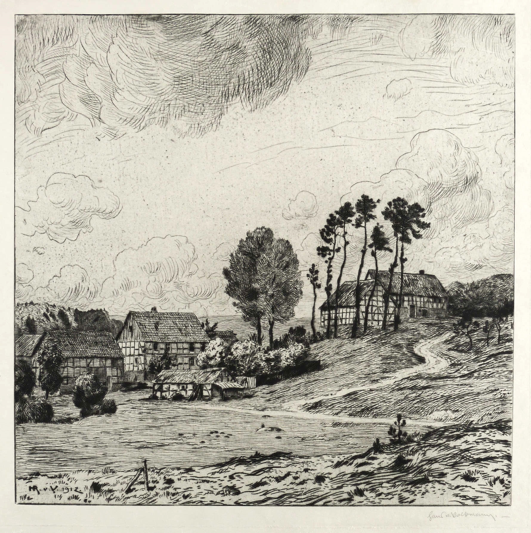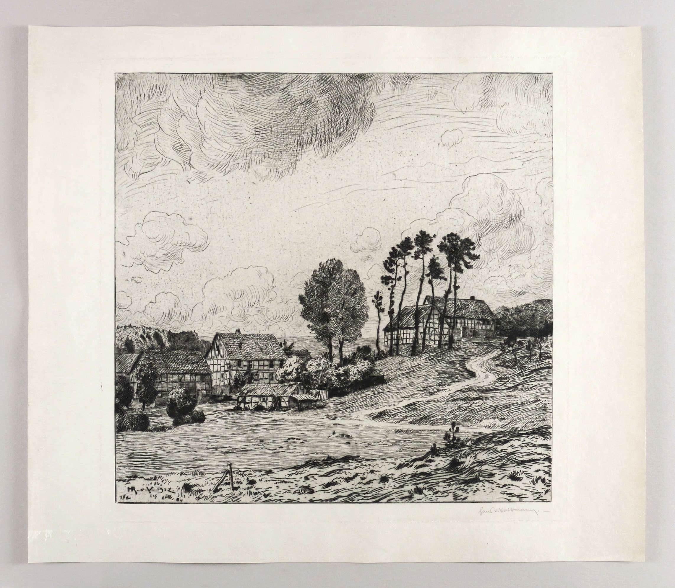 Rechts unten in Bleistift signiert: ″Hans v. Volkmann″. In der Platte links unten signiert und datiert: ″HR. v. V. 1912″. – Breitrandiges Exemplar. Leichte Altersspuren.. Sehr guter Zustand.