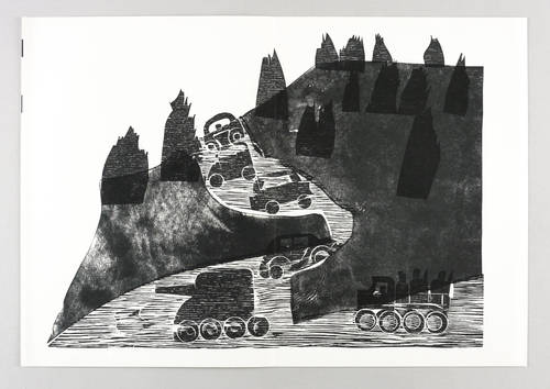 1973. Farbholzschnitt, in Anthrazit & Schwarz, auf hellchamois Velinkarton. – Originale Künstlergrafik, von HAP Grieshaber. – 40,1 x 55,6 cm (Darstellung / Druckstock), 45 x 65 cm (Blatt).