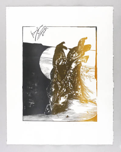 1981. Farblithografie / Feder- & Pinsellithografie, in Sepia, Braun & Schwarzviolett, auf schwerem hellchamois Hahnemühle. – Originale Künstlergrafik, von Irmgard Horlbeck-Kappler. – Künstlerexemplar (e.a.). – 48,2 x 37,6 cm (Darstellung / Druckbild), 69 x 53 cm (Blatt).