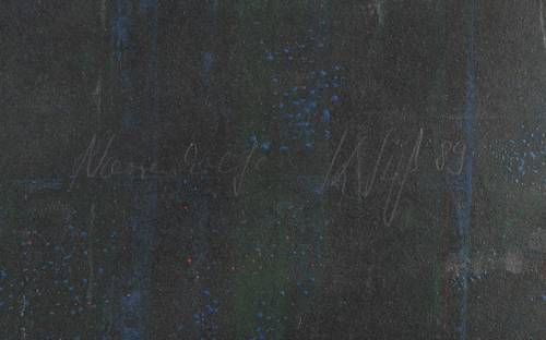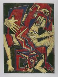 1989. Farbholzschnitt, in 4 Farben, auf schwerem schwarz getöntem Karton. – Originale Künstlergrafik, von Klaus Süß. – 69,4 x 49,5 cm (Darstellung / Blatt).