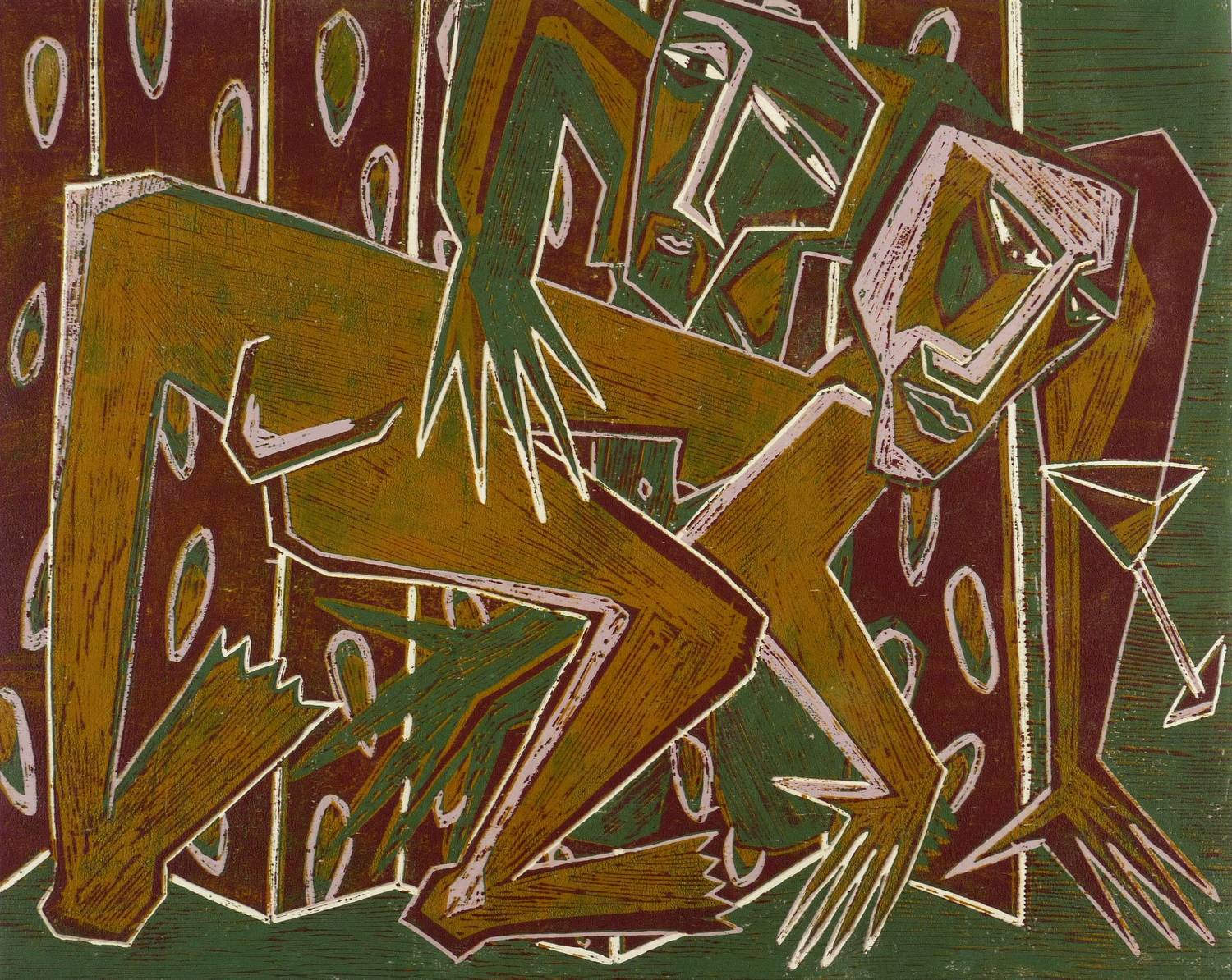 1990. Farbholzschnitt, in 4 Farben, auf schwerem hellchamois Büttenkarton. – Originale Künstlergrafik, von Klaus Süß. – Auflage Exemplar Nr. 4/12. – 60,6 x 75,4 cm (Darstellung / Blatt).