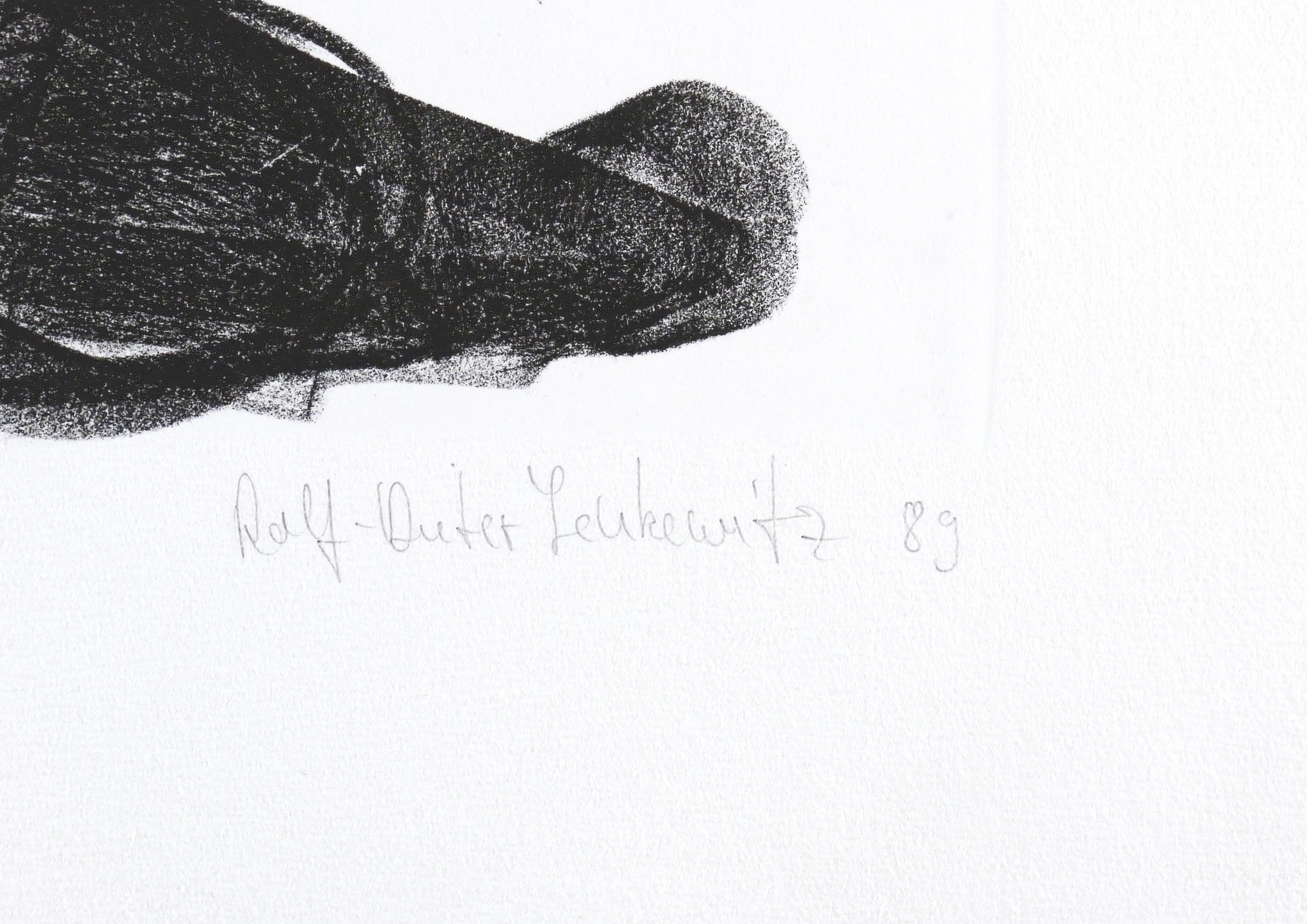1989. Lithografie / Kreidelithografie, partiell geschabt, in Schwarz, auf schwerem hellchamois Hahnemühle. – Originale Künstlergrafik, von Rolf-Dieter Lenkewitz. – Auflage Exemplar Nr. 2/10. – 57,3 x 42,5 cm (Darstellung / Druckbild), 71 x 56 cm (Blatt).