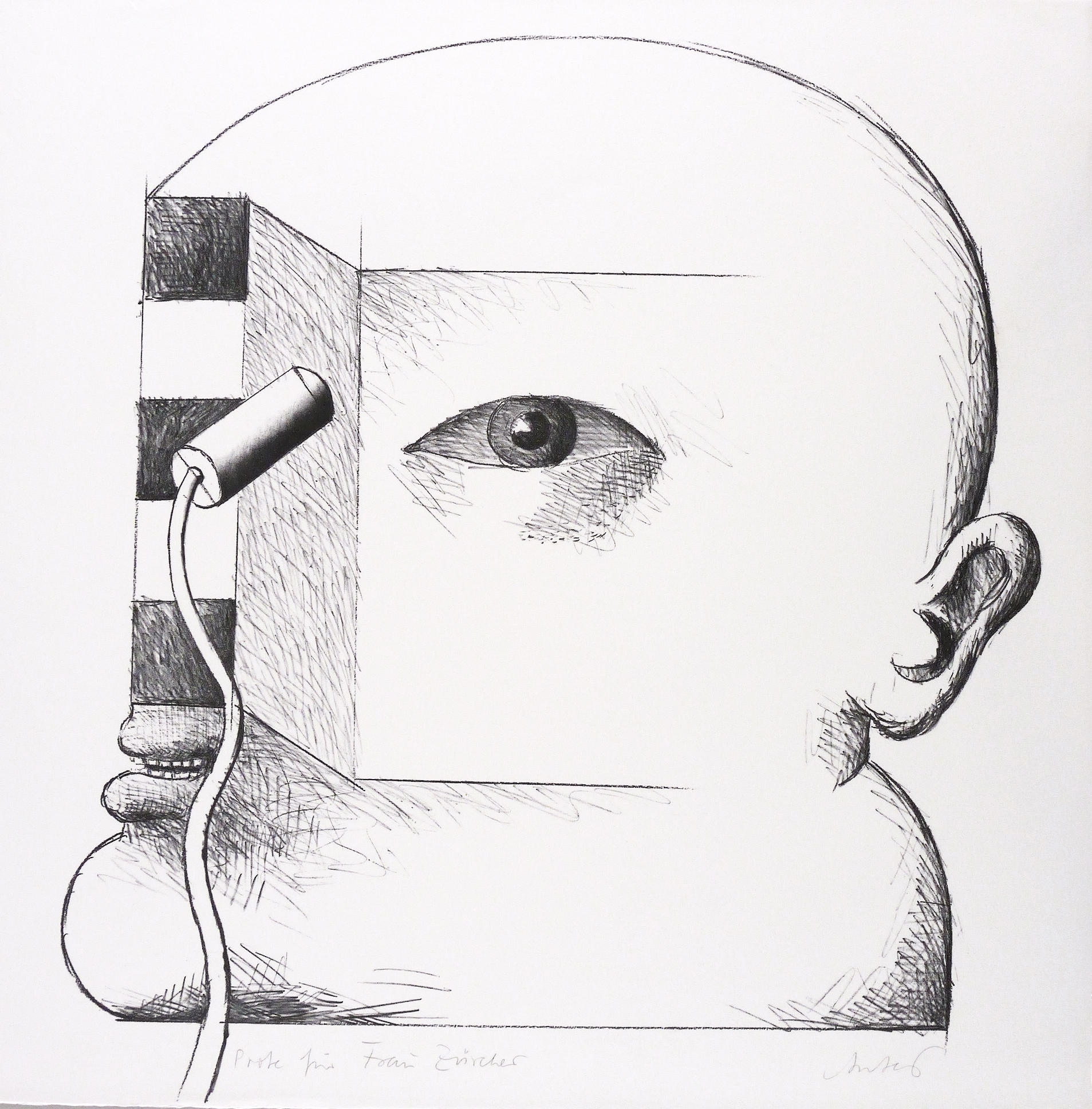 1971. Lithografie / Kreidelithografie, in Schwarz, auf festem hellchamois BFK Rives. – Originale Künstlergrafik, von Horst Antes. – Probedruck. – 57,3 x 52,6 cm (Darstellung / Druckbild), 60 x 60 cm (Blatt).