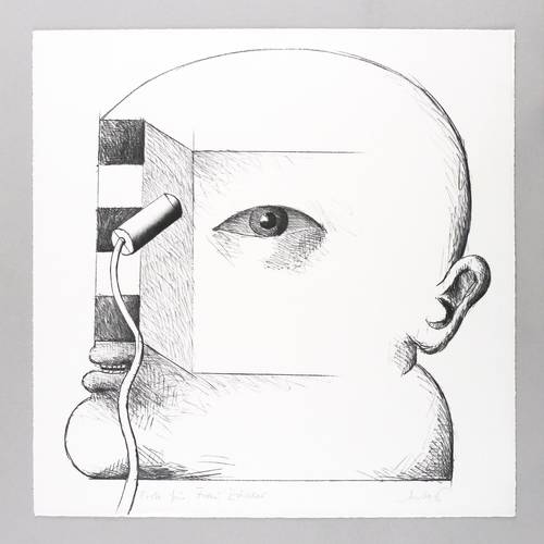 Horst Antes (*1936 Heppenheim - lebt und arbeitet in Karlsruhe, Berlin und Castellina in Chianti / Italien). Deutscher Maler, Grafiker und Bildhauer. Studierte Malerei 1957-59 bei HAP Grieshaber an der Akademie der Bildenden Künste Karlsruhe. Seit 1967 Professor für Malerei an der Akademie Karlsruhe. 1962 Villa Romana Florenz, 1963 Villa Massimo Rom. 1963 Ausstellung der ersten plastischen Kopffüßler-Figur. 1967 Metallplastiken zum Garten der sieben Denkmäler der Lüste anlässlich der Bundesgartenschau für den Botanischen Garten in Karlsruhe. 1968 Gastprofessur an der Hochschule für Bildende Künste Berlin. Seit 1983 Mitglied der Freien Akademie der Künste Hamburg. - Seine monolithisch wirkenden, oft gnomenhaft körperlosen Figuren weisen Ankläge von spätem Kubismus und Surrealismus auf.