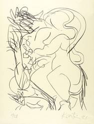 1981. Lithografie / Kreidelithografie, in Schwarz, auf feinstem chamois Ingres. – Originale Künstlergrafik, von Helmut Schmidt-Kirstein. – Auflage Exemplar Nr. 1/20. – 51,5 x 40,5 cm (Darstellung / Druckbild), 64 x 48 cm (Blatt).