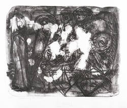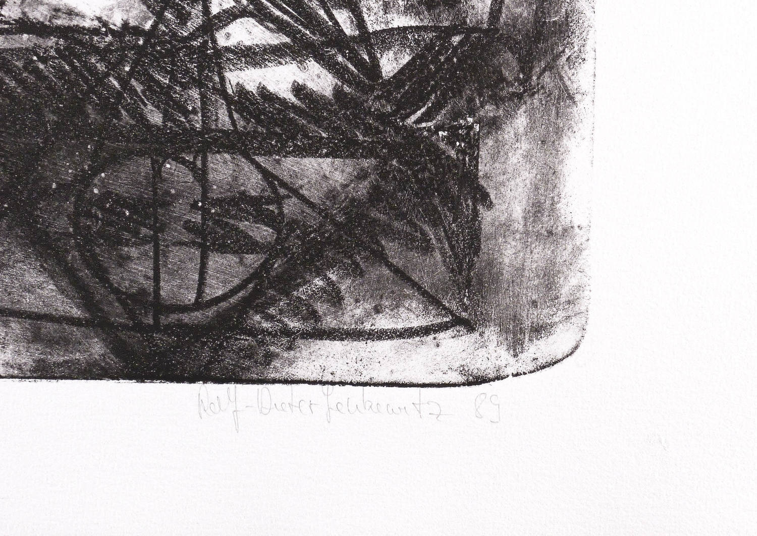 1989. Lithografie / Kreide- & Pinsellithografie, partiell geschabt, in Schwarz, auf schwerem hellchamois Hahnemühle. – Originale Künstlergrafik, von Rolf-Dieter Lenkewitz. – Auflage Exemplar Nr. 2/10. – 42,0 x 52,3 cm (Darstellung / Druckbild), 56 x 80 cm (Blatt).
