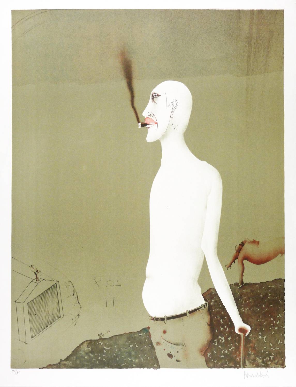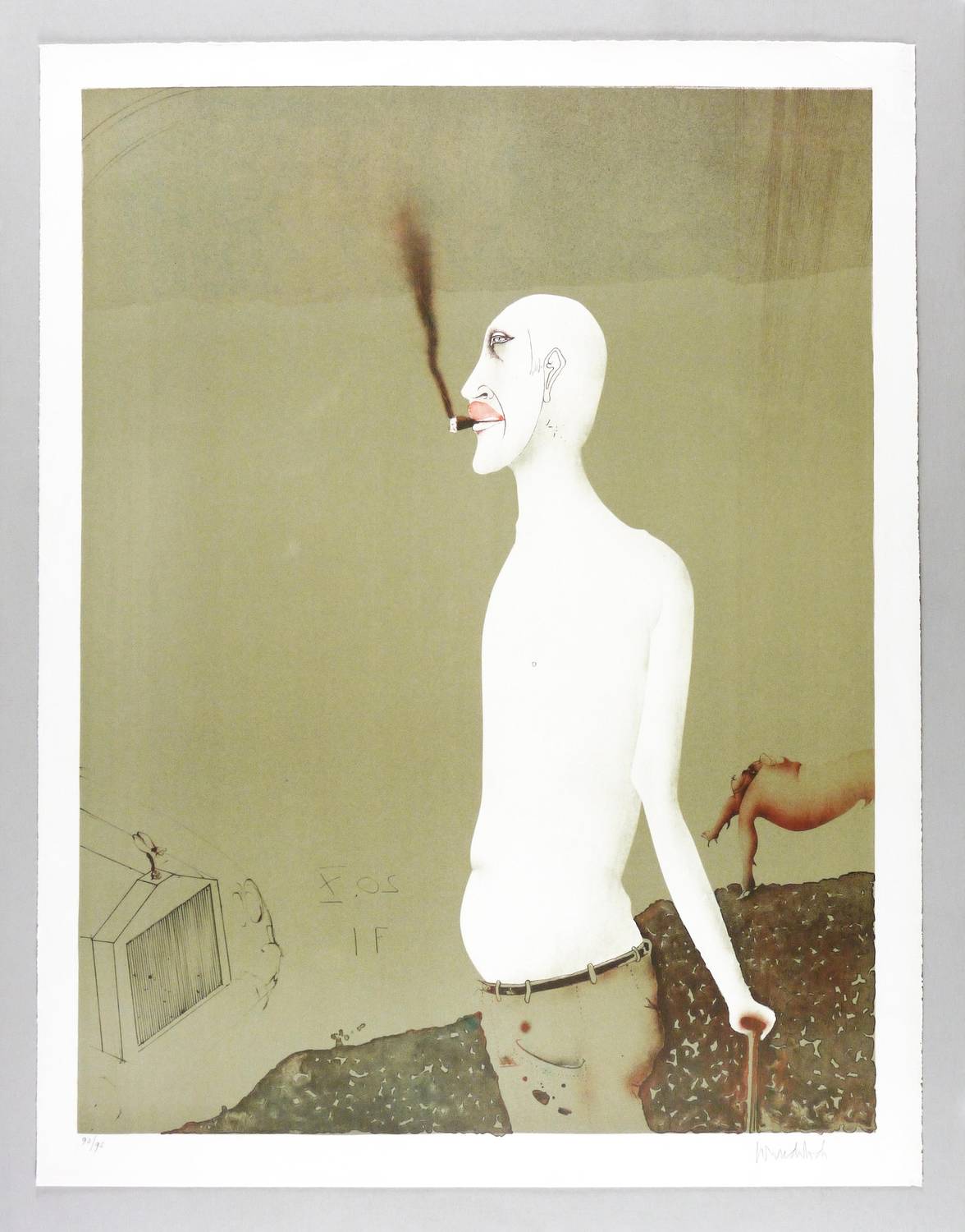 1971. Farblithografie / Kreide- & Pinsellithografie, in Grau, Zinnober & Grün, mit Irisdruck, auf rauem hellchamois Rives. – Originale Künstlergrafik, von Paul Wunderlich. – Auflage Exemplar Nr. 93/95. – 82 x 64 cm (Blatt), 74,8 x 57,0 cm (Darstellung / Druckbild).