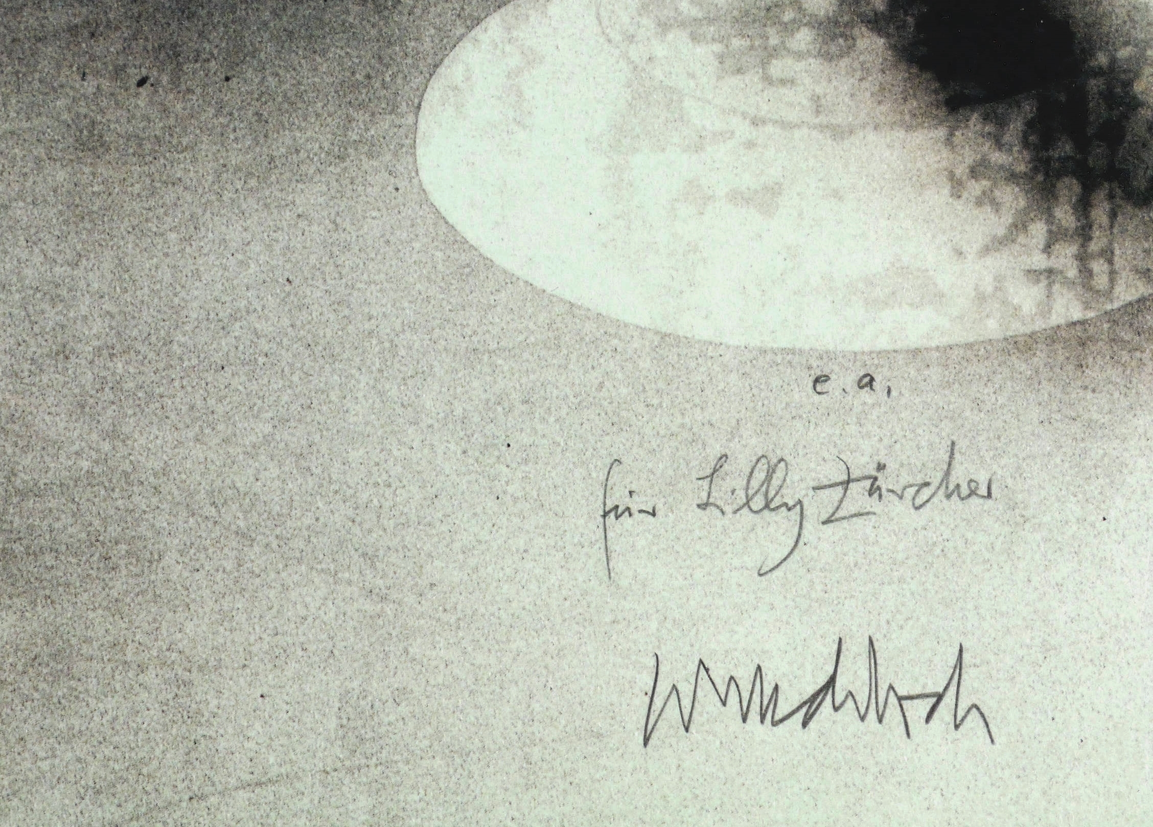 Riediger 481. – Rechts unten in der Darstellung in Bleistift signiert: ″Wunderlich″. Darüber Auflagenbezeichnung: ″e.a.″ Weiter persönliche Widmung. Im Stein links mittig Datum: ″7.5.74″. Rechts auf dem Pult spiegelverkehrte Signatur: ″Paul Wunderlich″. – Druck bei Matthieu in Dielsdorf, Schweiz, auf der berühmten Steindruckpresse Johannisberg 1911. – Eines von 10 Künstlerexemplaren zu einer Auflage von 100 nummerierten Exemplaren. – Randloser Druck. – Ohne Mangel. Sehr guter Zustand.
