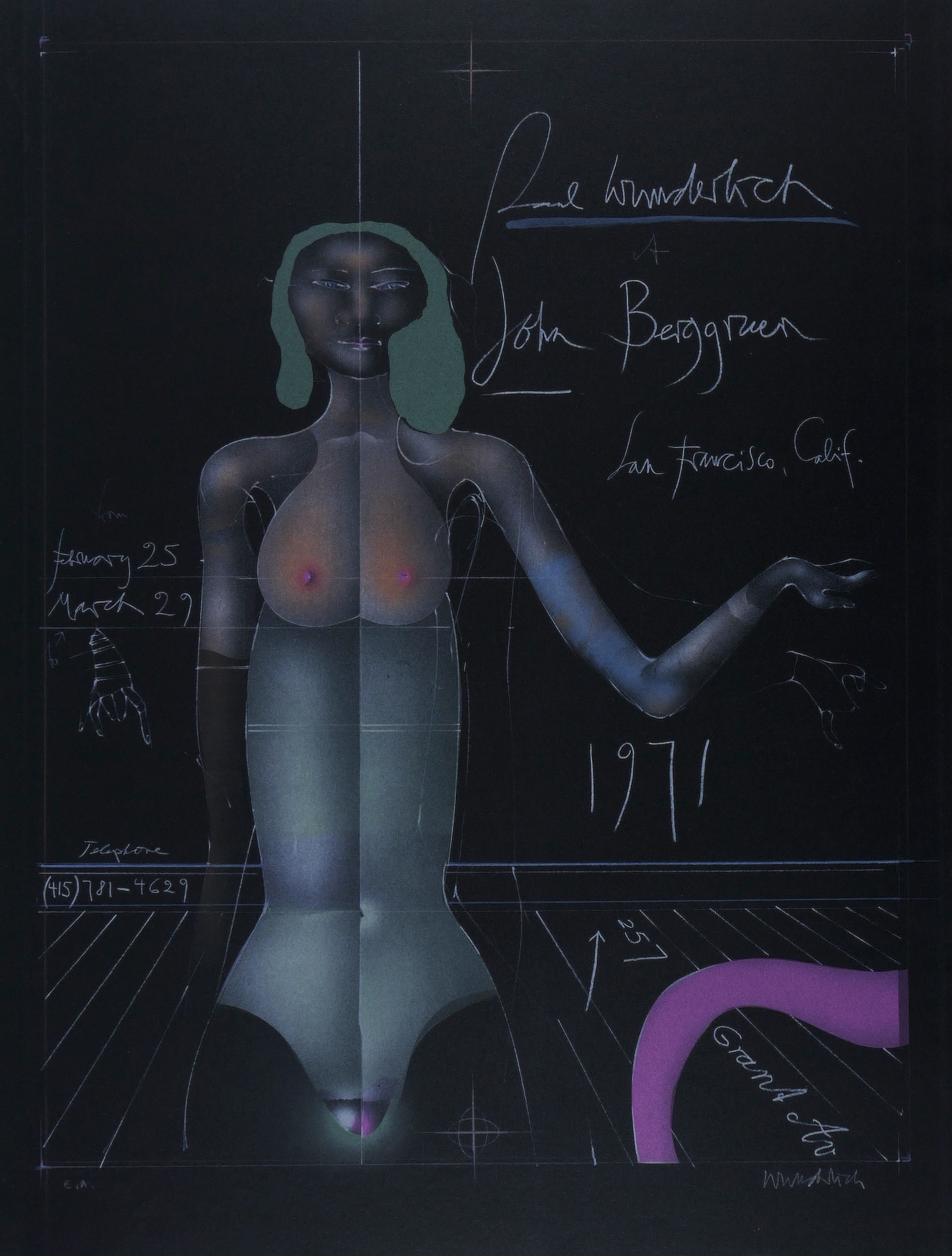 1970. Farblithografie / Kreide- & Pinsellithografie, in 5 Farben, auf schwarz getöntem Fabriano Murillo. – Originale Künstlergrafik, von Paul Wunderlich. – Künstlerexemplar (e.a.). – 64,1 x 49,6 cm (Darstellung / Einfassungslinie), 75 x 57 cm (Blatt).