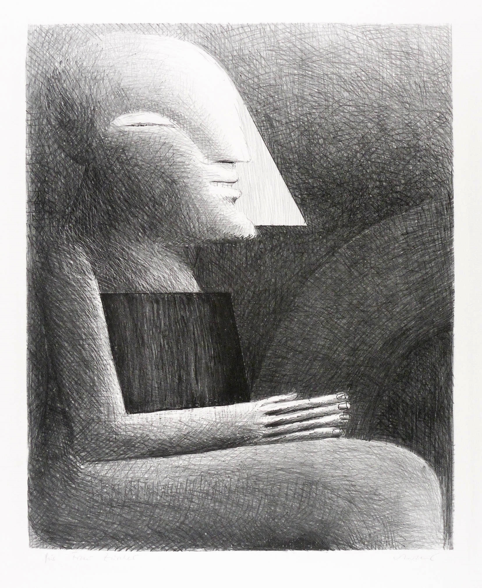 1973/1974. Lithografie / Kreidelithografie, in Schwarz, auf festem hellchamois BFK Rives. – Originale Künstlergrafik, von Horst Antes. – 55,2 x 44,7 cm (Darstellung / Druckbild), 75 x 61 cm (Blatt).