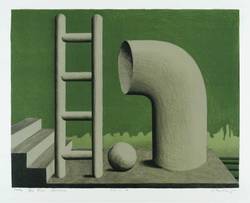 Horst Antes (*1936 Heppenheim - lebt und arbeitet in Karlsruhe, Berlin und Castellina in Chianti / Italien). Deutscher Maler, Grafiker und Bildhauer. Studierte Malerei 1957-59 bei HAP Grieshaber an der Akademie der Bildenden Künste Karlsruhe. Seit 1967 Professor für Malerei an der Akademie Karlsruhe. 1962 Villa Romana Florenz, 1963 Villa Massimo Rom. 1963 Ausstellung der ersten plastischen Kopffüßler-Figur. 1967 Metallplastiken zum Garten der sieben Denkmäler der Lüste anlässlich der Bundesgartenschau für den Botanischen Garten in Karlsruhe. 1968 Gastprofessur an der Hochschule für Bildende Künste Berlin. Seit 1983 Mitglied der Freien Akademie der Künste Hamburg. - Seine monolithisch wirkenden, oft gnomenhaft körperlosen Figuren weisen Ankläge von spätem Kubismus und Surrealismus auf.