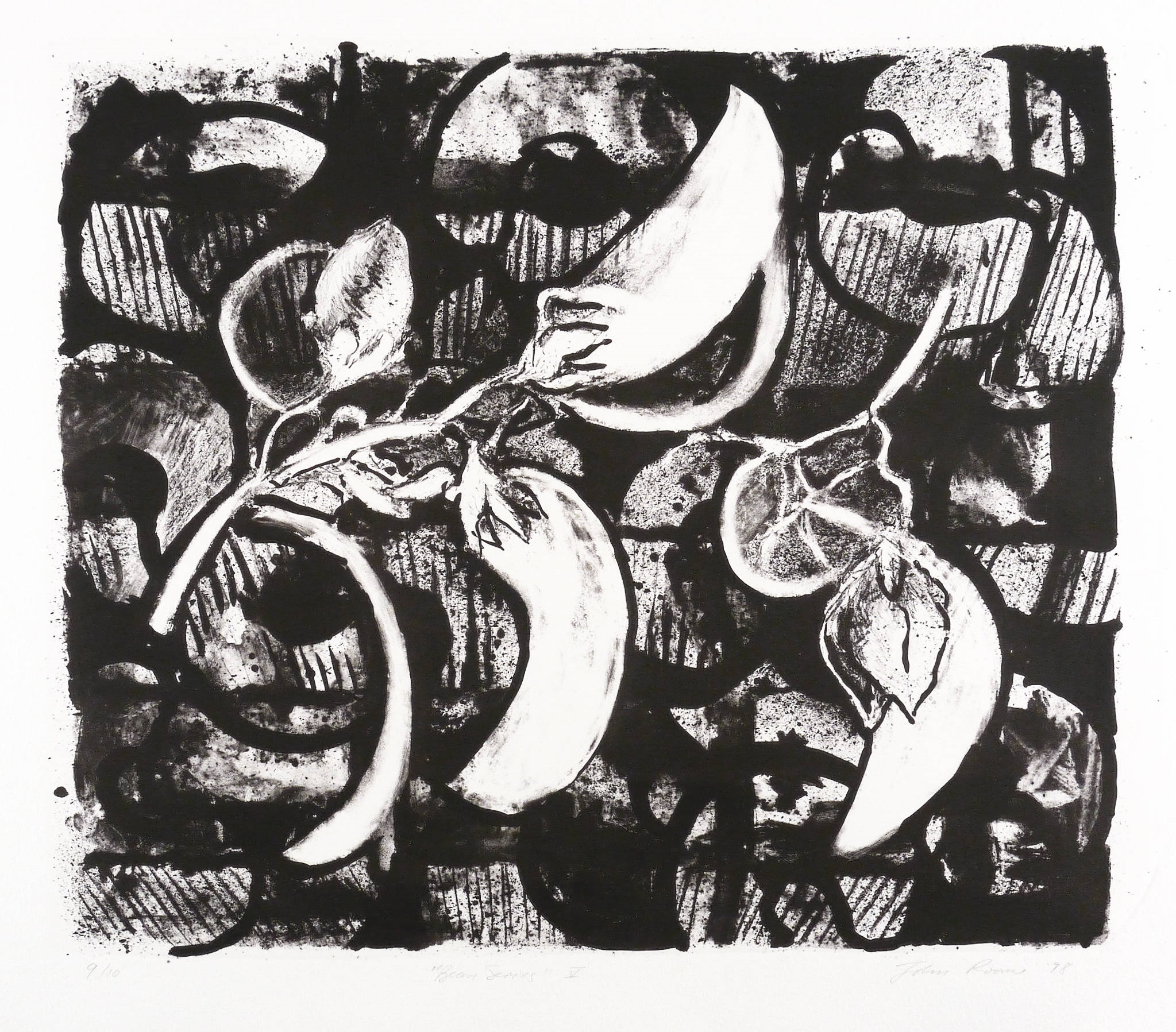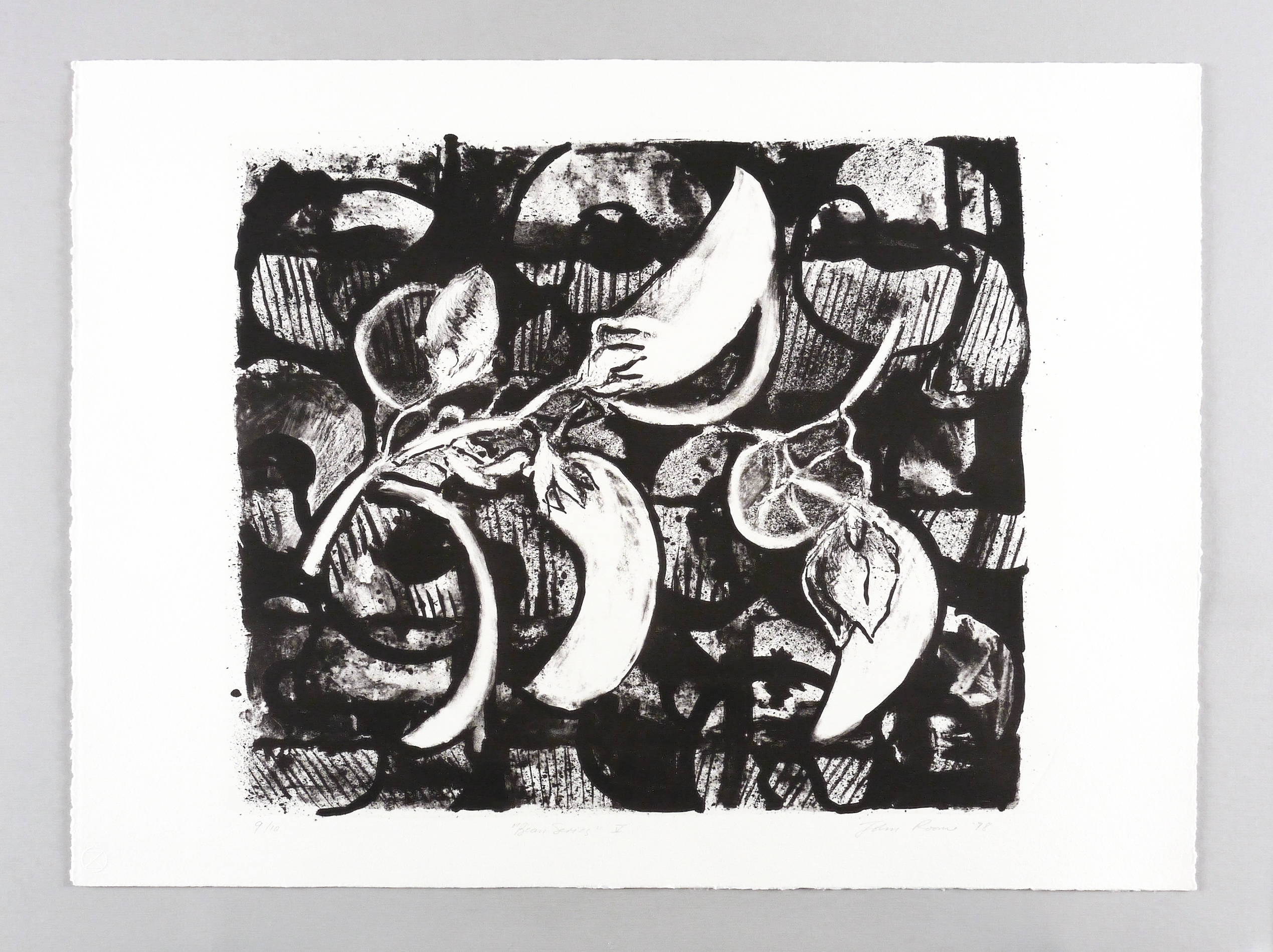 Rechts unten in Bleistift signiert und datiert: ″John Roome ’98″. Links eigenhändige Auflagenbezeichnung: ″9/10″. Mittig Titel: ″Bean Series V″. Wasserzeichen der Hahnemühle. Blindstempel des Druckers Michael Wackwitz. – Sehr gutes Exemplar.