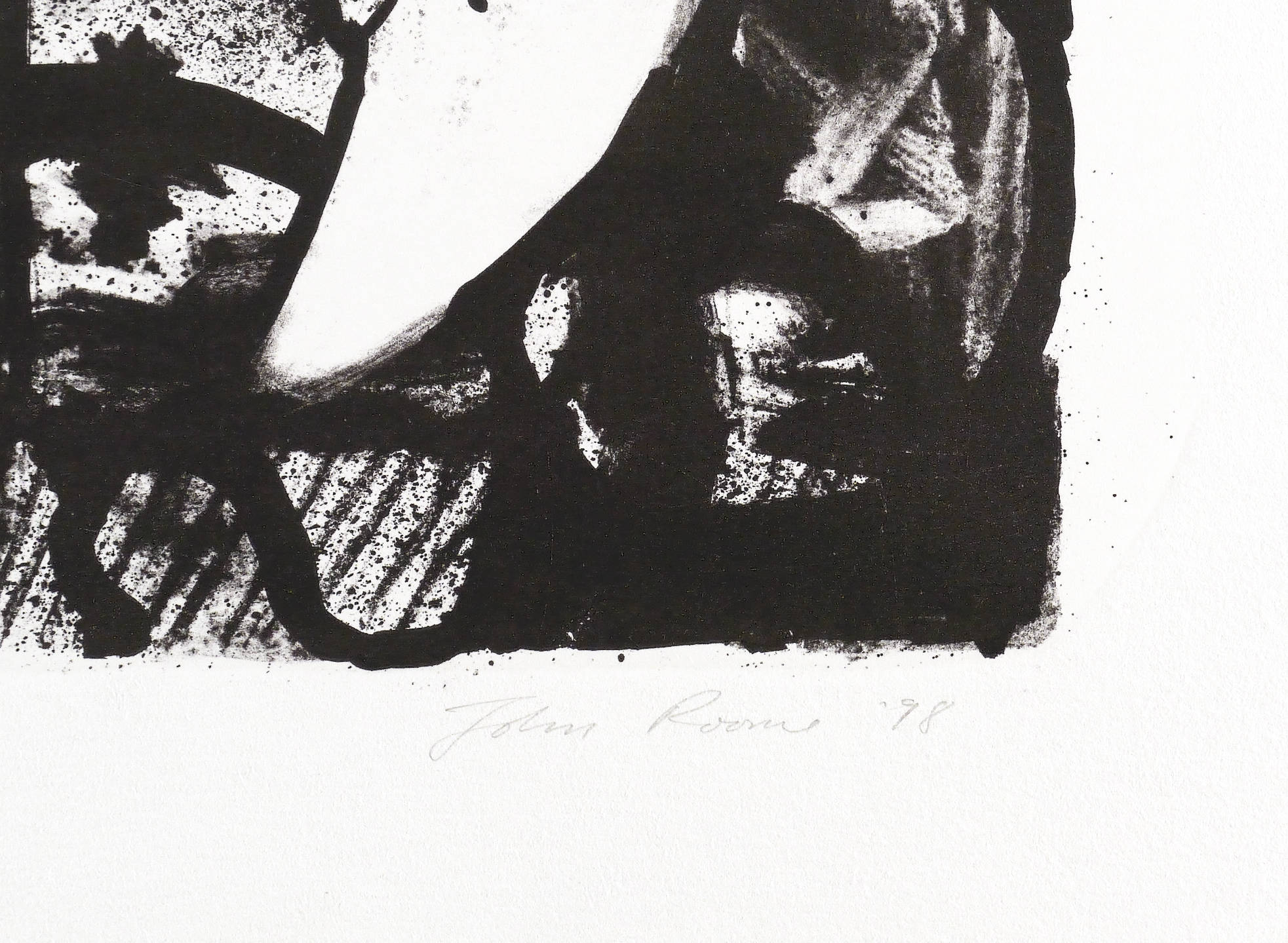 1998. Lithografie / Kreidelithografie, in Schwarz, auf schwerem chamois Hahnemühle. – Originale Künstlergrafik, von John Roome. – Auflage Exemplar Nr. 9/10. – 41,0 x 47,8 cm (Darstellung / Druckbild), 50 x 68 cm (Blatt).