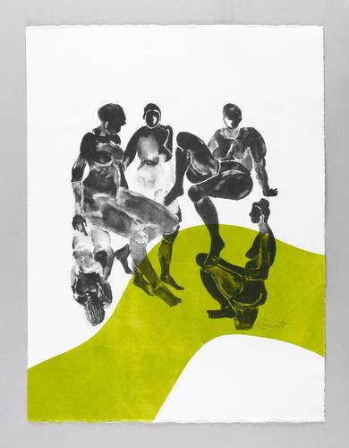 2018. Farblithografie / Pinsellithografie, in Lindgrün & Schwarz, auf weißem BFK Rives. – Originale Künstlergrafik, von Gisela List. – Auflage Exemplar Nr. 1/5. – 53,5 x 50,0 cm (Darstellung / Druckbild), 67 x 50 cm (Blatt).