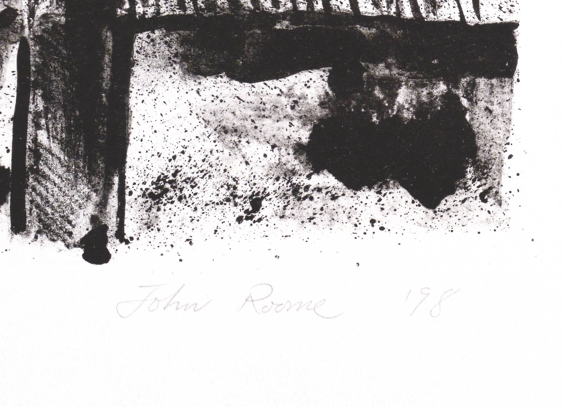 1998. Lithografie / Kreidelithografie, in Schwarz, auf schwerem chamois Hahnemühle. – Originale Künstlergrafik, von John Roome. – Probedruck. – 40,8 x 47,9 cm (Darstellung / Druckbild), 50 x 68 cm (Blatt).