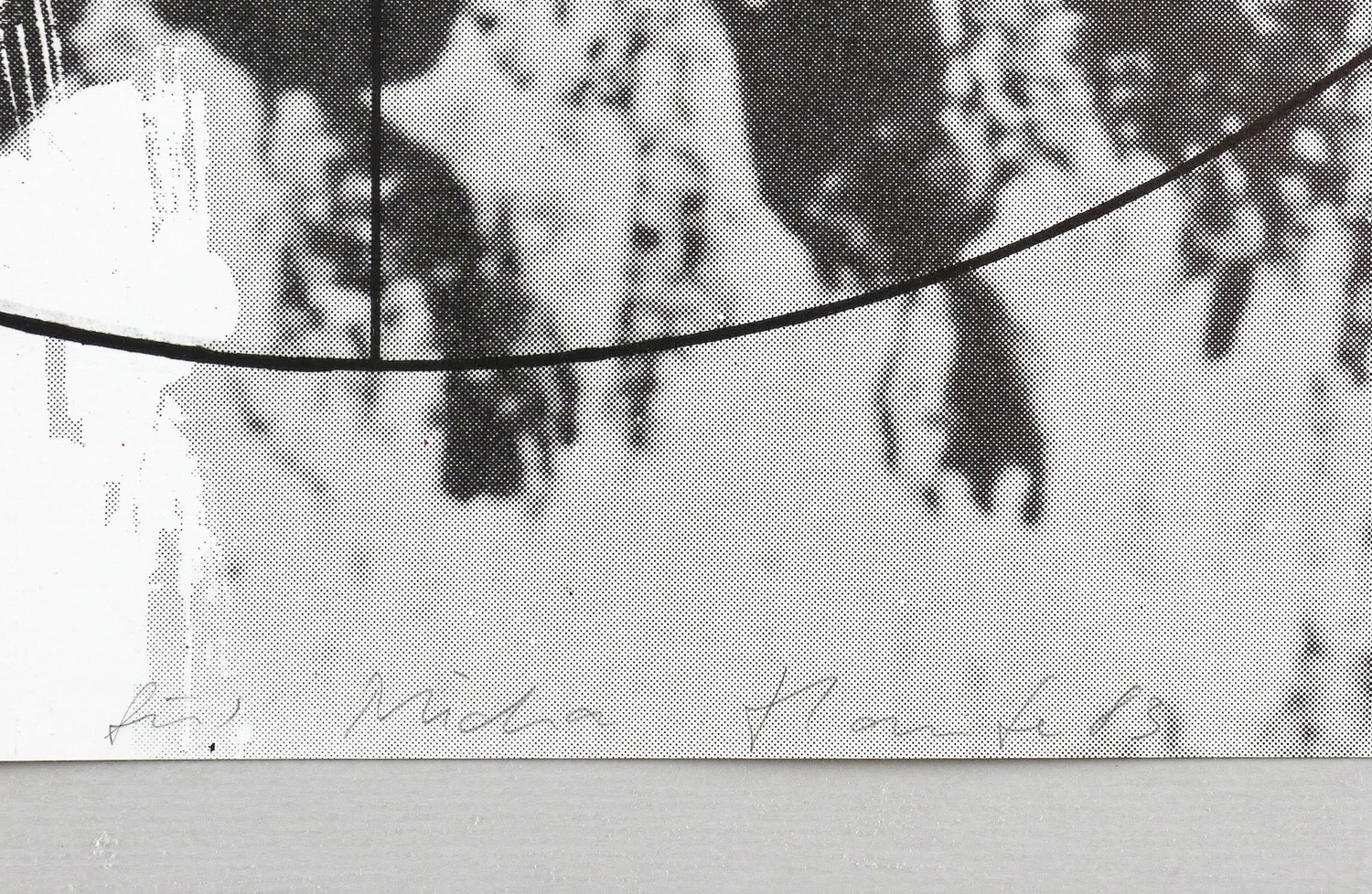 Im rechten Blattrand in Bleistift signiert und datiert: ″Haufe 83″. Dazu Widmung für den Steindrucker Michael Wackwitz. – Originalgrafisches Künstlerplakat für die Theaterinszenierung ″Bruder Eichmann″ von H. Kipphardt, in der Regie von H. Schönemann 1983 im Staatsschauspiel Dresden. – Sehr guter Zustand.