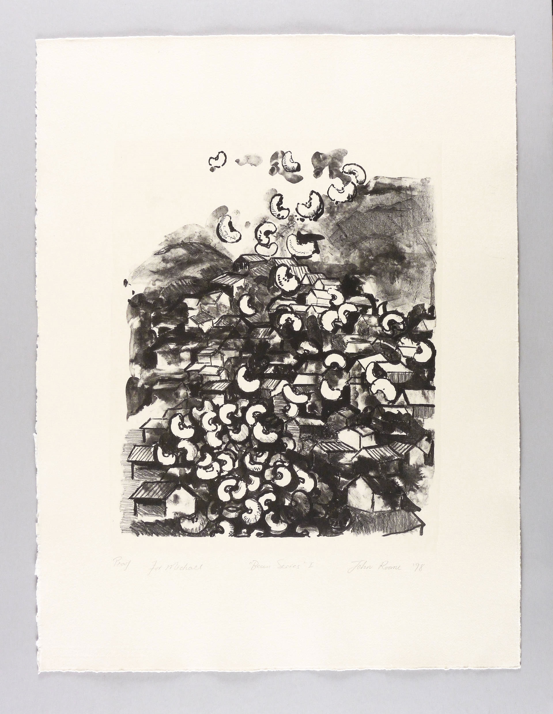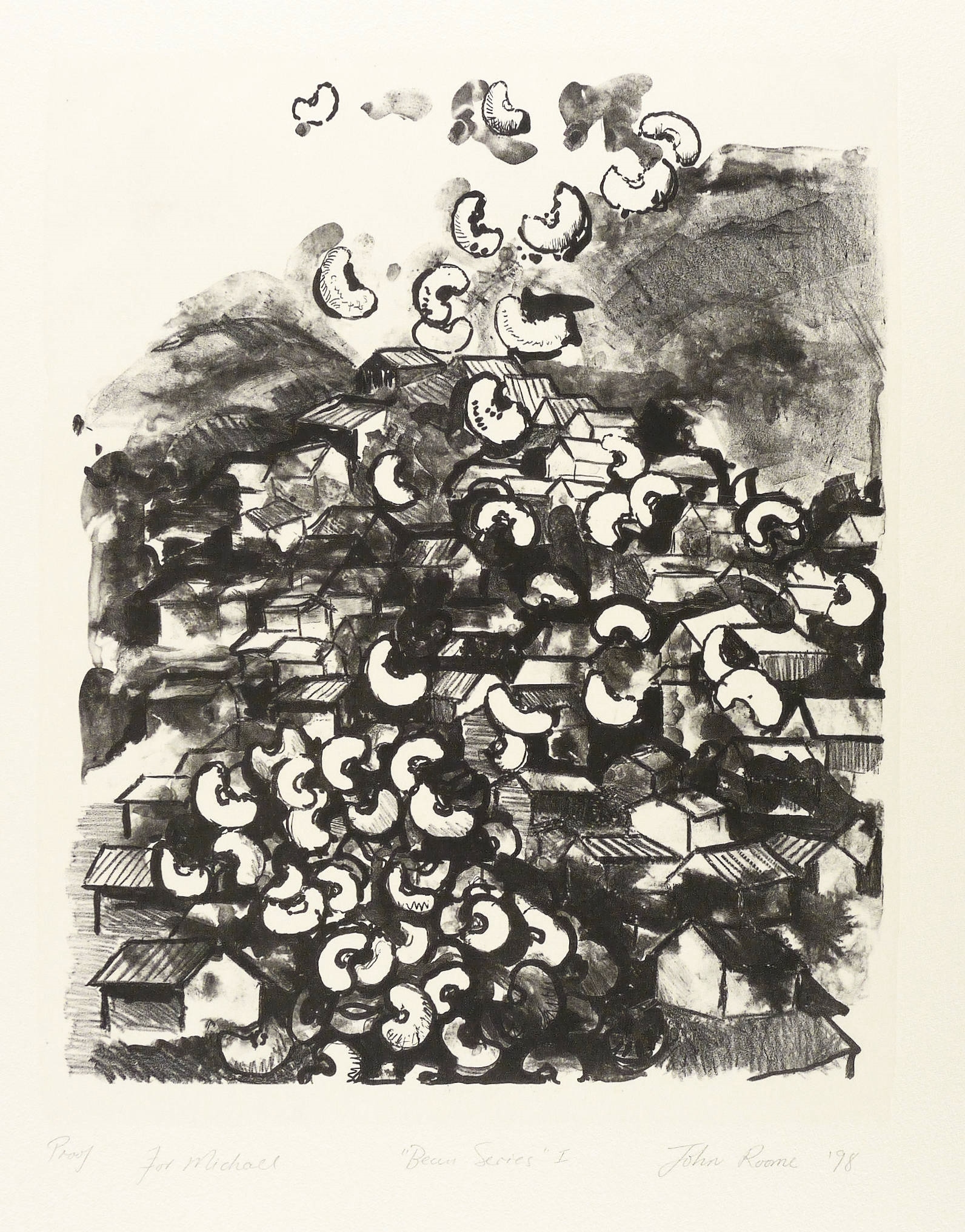 Rechts unten in Bleistift signiert und datiert: ″John Roome ’98″. Links eigenhändige Auflagenbezeichnung: ″Proof″. Mittig Titel: ″Bean Series I″. Wasserzeichen der Hahnemühle. – Sehr gutes Exemplar.