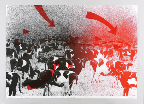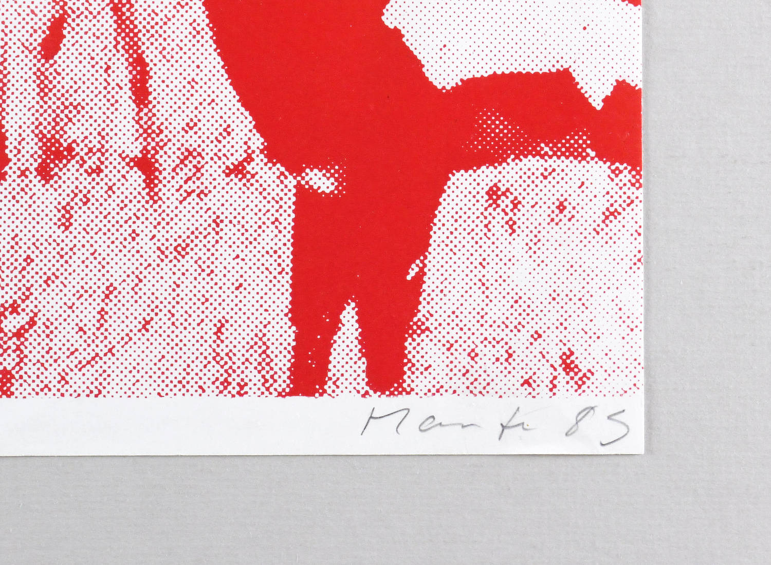 1985. Farbsiebdruck / Farbserigrafie, in Rot & Schwarz, auf glattem weißem Maschinenpapier. – Originale Künstlergrafik, von Jürgen Haufe. – Auflage Exemplar Nr. 2/20. – 55,4 x 77,2 cm (Blatt), 54,0 x 77,2 cm (Darstellung / Druckbild).