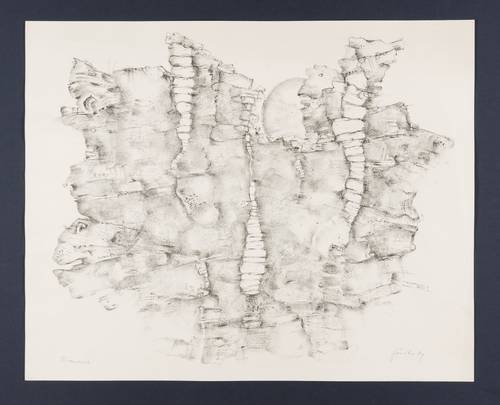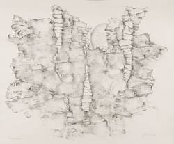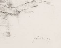 1974. Lithografie / Kreidelithografie, in Schwarz, auf hellchamios Velinkarton. – Originale Künstlergrafik, von Wieland Förster. – Probedruck. – 38,0 x 47,0 cm (Darstellung / Druckbild), 40 x 50 cm (Blatt), 50 x 60 cm (Passepartout).