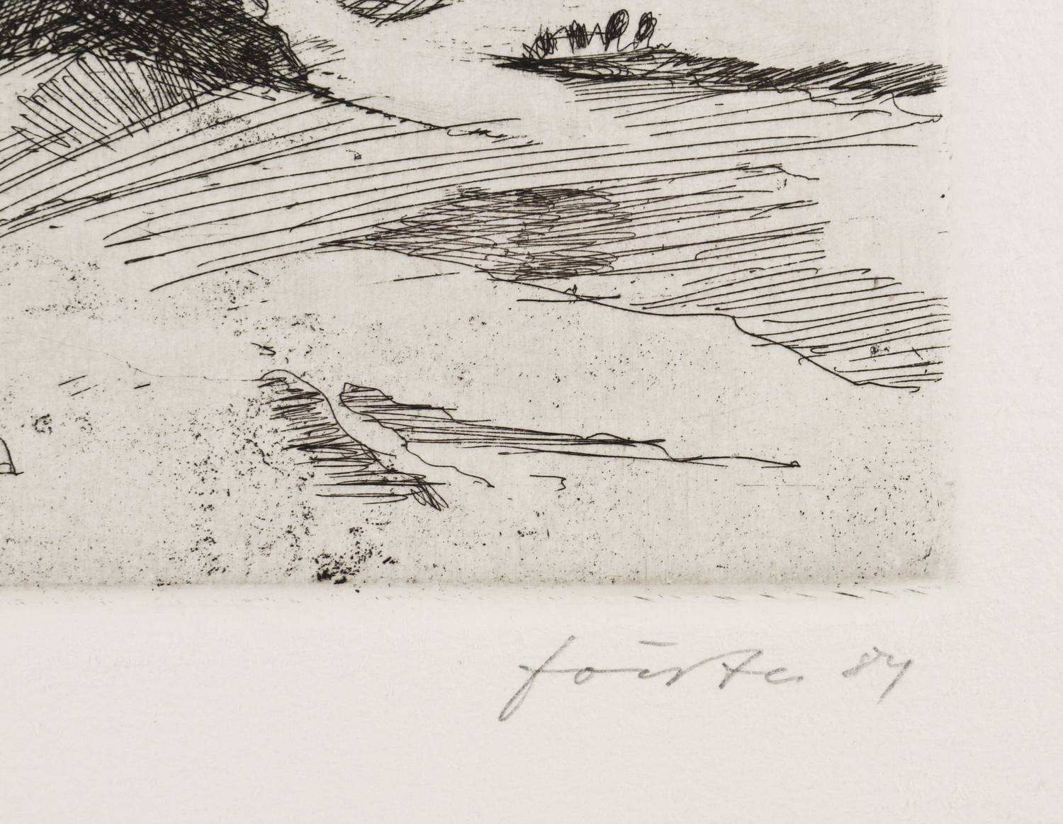 1984. Radierung / Strichätzung, in Schwarz, mit Plattenton, auf Hahnemühle. – Originale Künstlergrafik, von Wieland Förster. – Auflage Exemplar Nr. 23/25. – 31,5 x 24,3 cm (Darstellung / Platte), 39,5 x 28,5 cm (Blatt).
