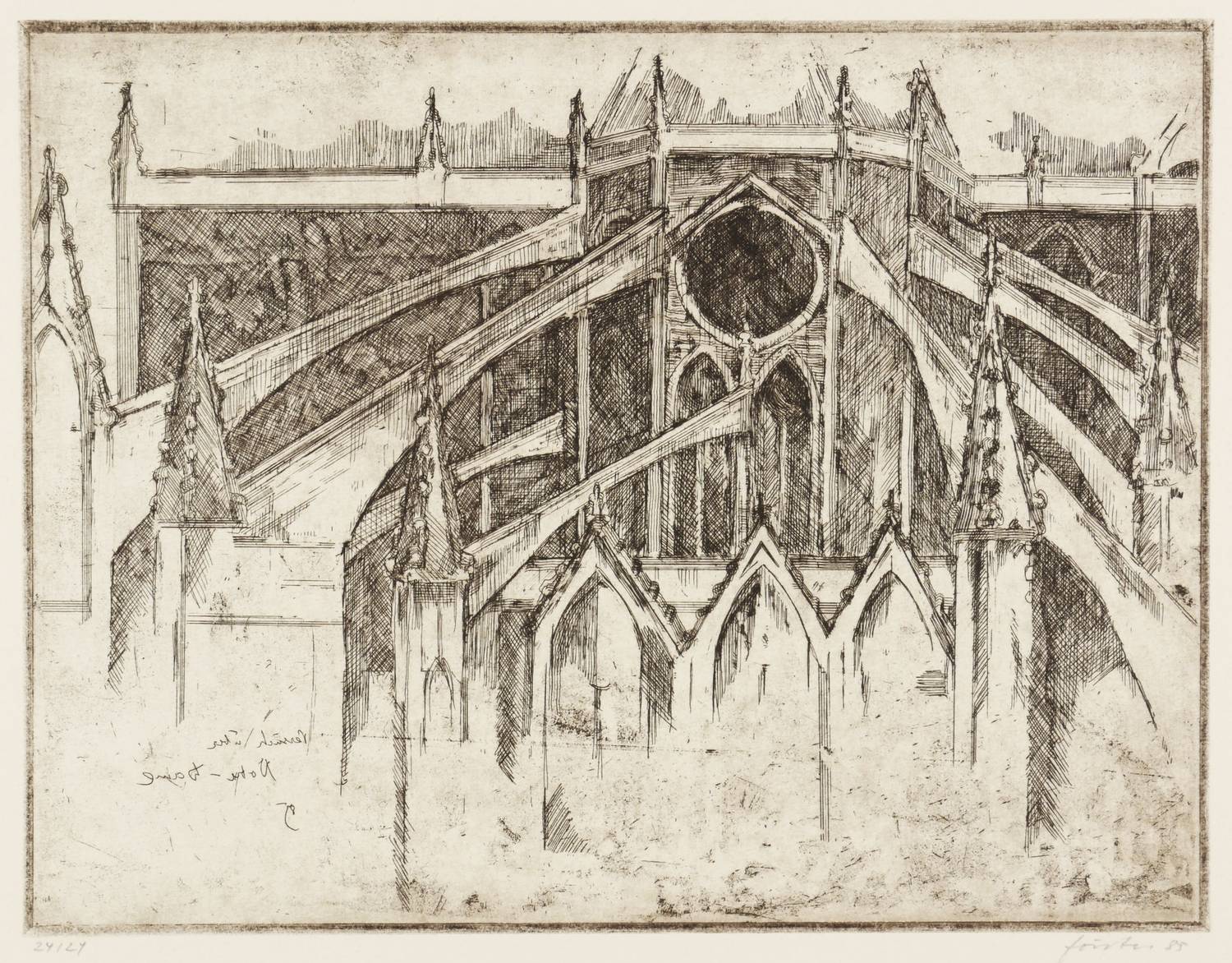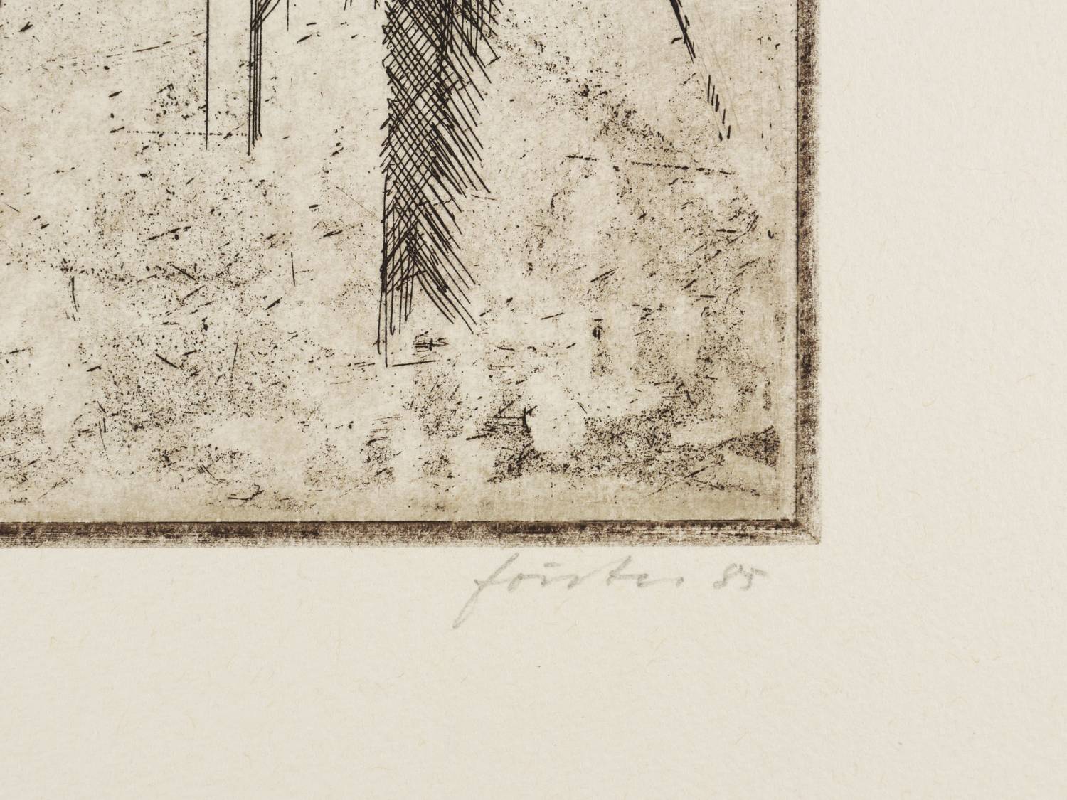 1985. Radierung / Strichätzung, in Braunschwarz, mit Plattenton, auf Büttenpapier. – Originale Künstlergrafik, von Wieland Förster. – Auflage Exemplar Nr. 24/24. – 24,8 x 32,2 cm (Darstellung / Platte), 39 x 53 cm (Blatt).