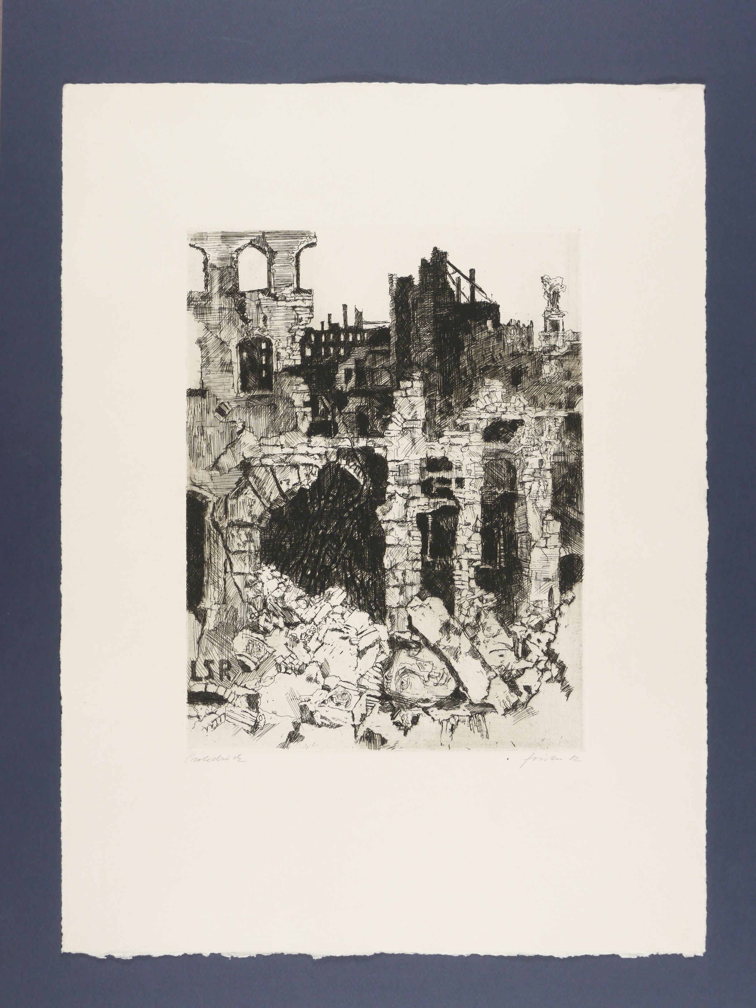 Außerhalb der Darstellung in Bleistift signiert und datiert rechts unten und links unten mit eigenhändiger Auflagenbezeichnung versehen. Am Blattrand links unten Wasserzeichen der Hahnemühle. Verso in Bleistift betitelt. – Papier schwach gebräunt. Blattrand marginal knickspurig oben rechts. Insgesamt gut erhalten.