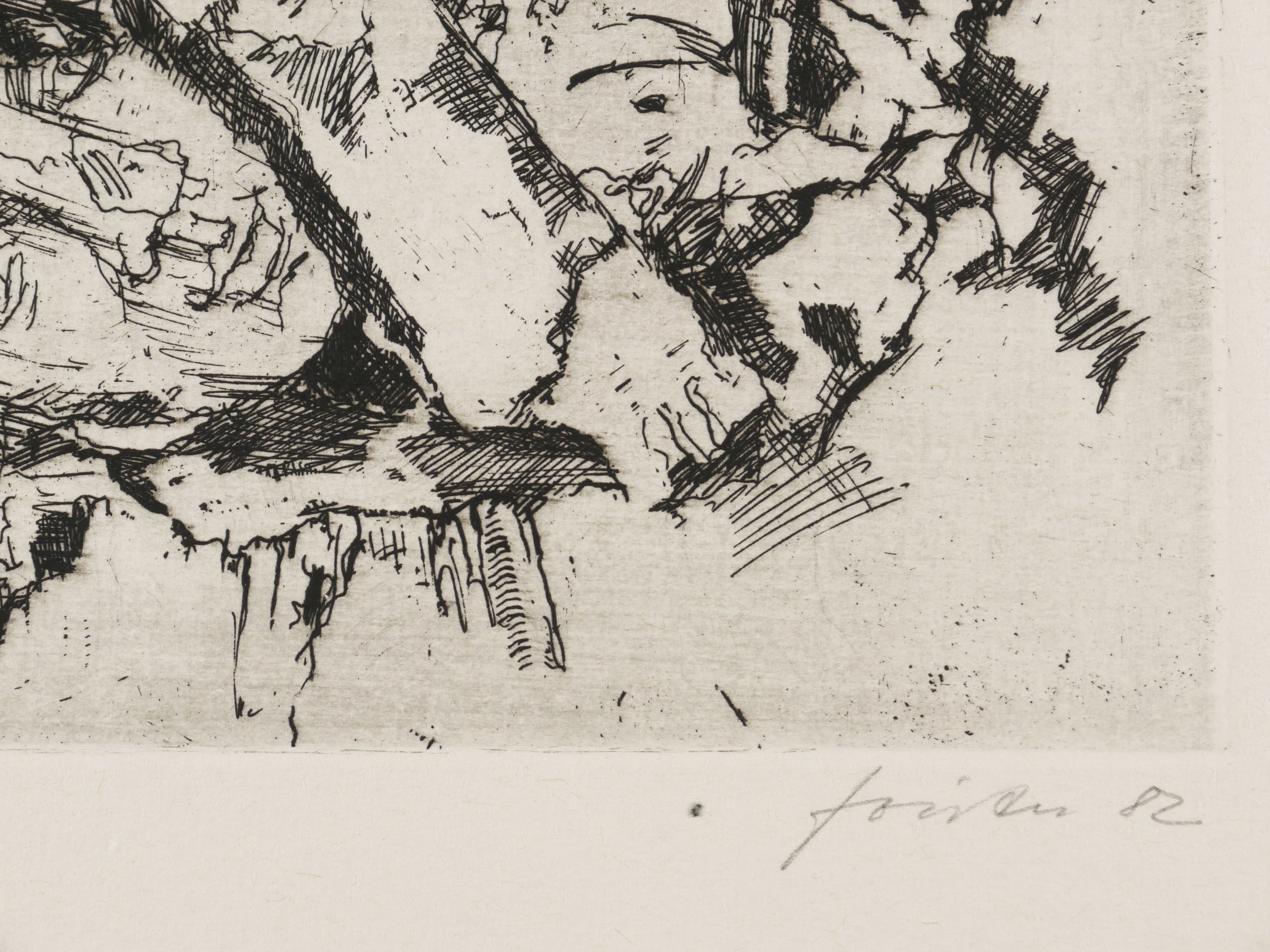 1982. Radierung / Strichätzung, in Schwarz, auf hellchamois Hahnemühle. – Originale Künstlergrafik, von Wieland Förster. – Probedruck. – 31,8 x 24,4 cm (Darstellung / Platte), 53 x 38,5 cm (Blatt).