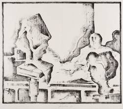 1985. Zinkografie / Kreidezinkografie, in Schwarz, auf Maschinenbütten. – Originale Künstlergrafik, von Wieland Förster. – 36,8 x 43,3 cm (Darstellung), 41 x 47 cm (Blatt).