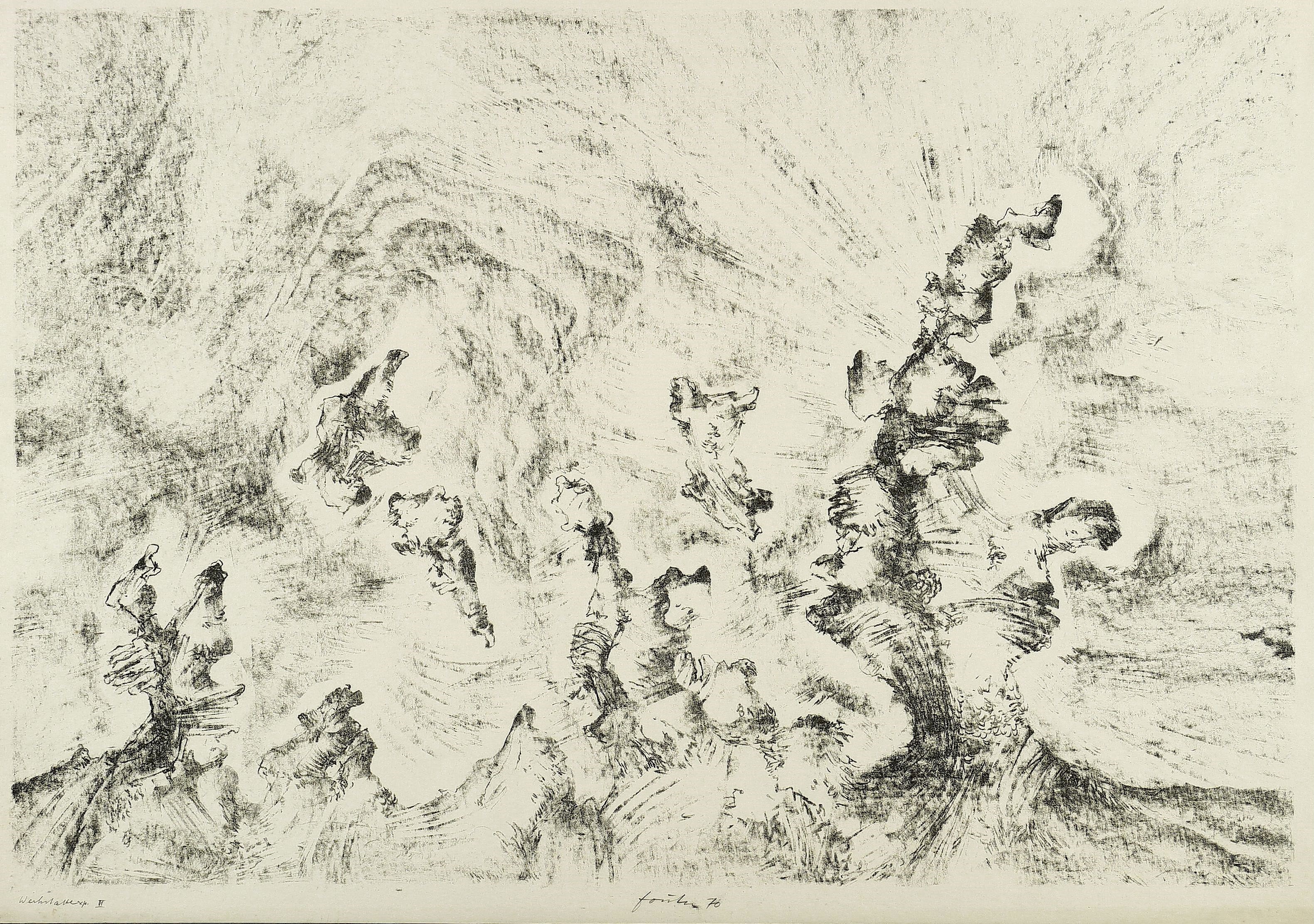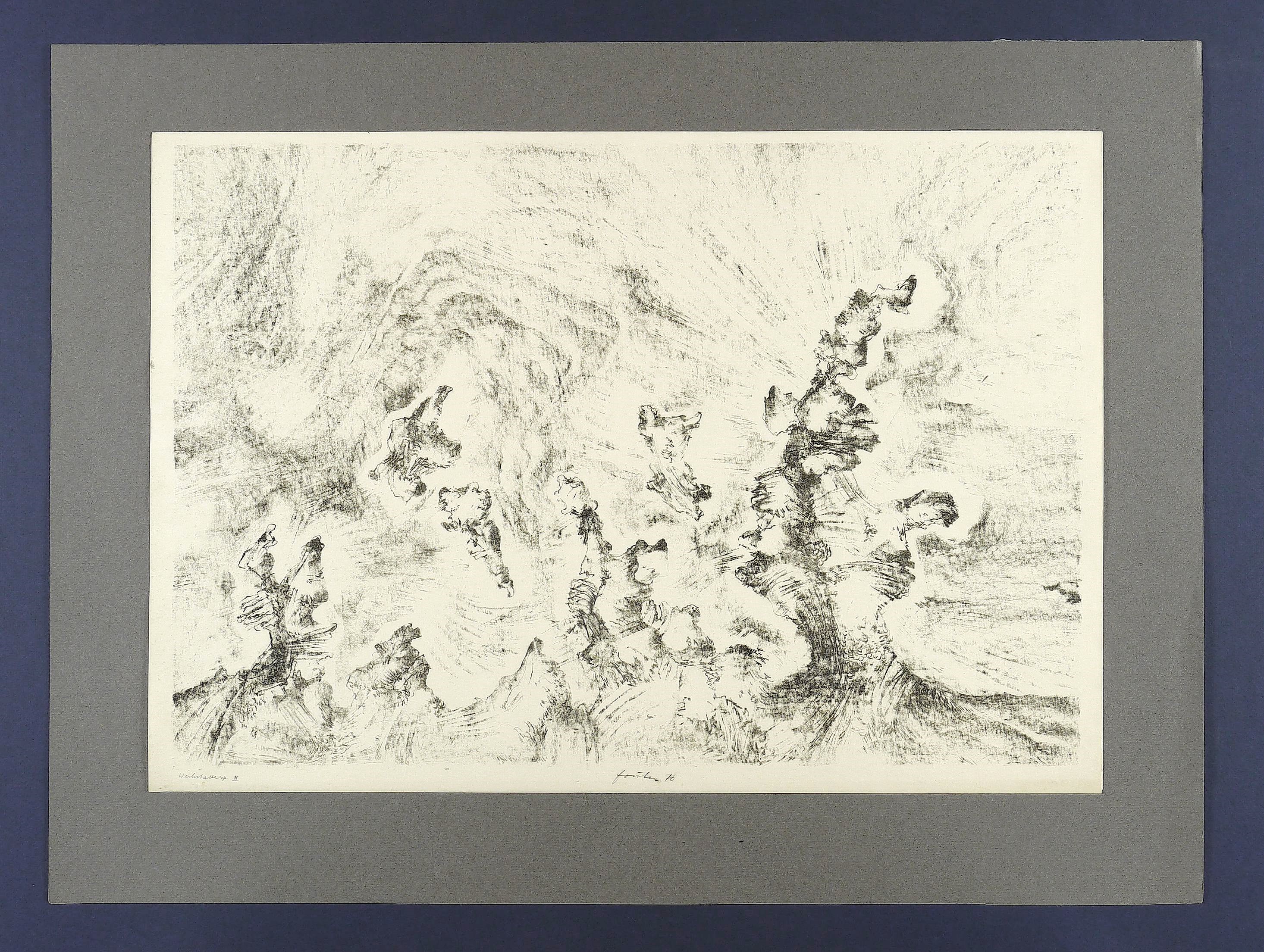 1970. Zinkografie / Kreidezinkografie, in Schwarz, auf hellgelbem Velin. – Originale Künstlergrafik, von Wieland Förster. – Künstlerexemplar (e.a.). – 34,5 x 50,5 cm (Darstellung), 37 x 53 cm (Blatt), 48,0 x 64,0 cm (Trägerblatt).