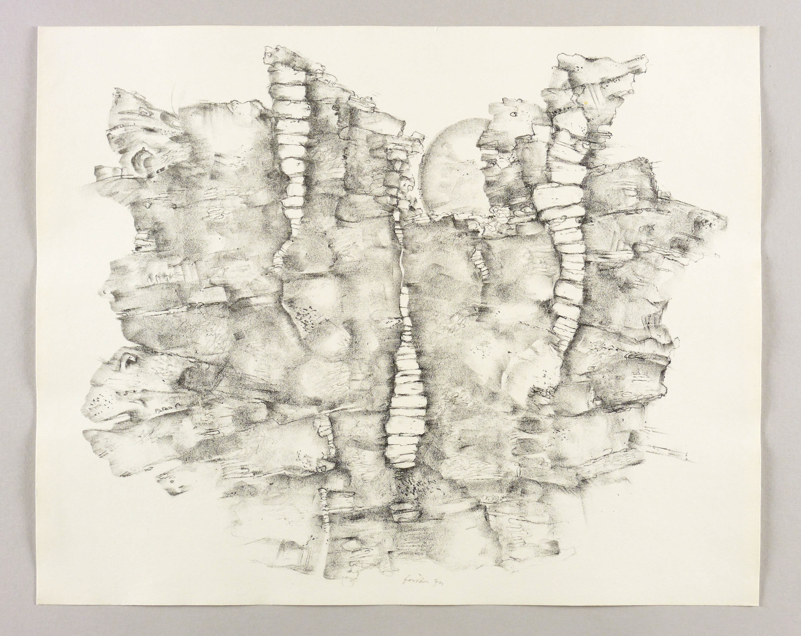 1974. Lithografie / Kreidelithografie, in Schwarz, auf hartem gelblichem Velin. – Originale Künstlergrafik, von Wieland Förster. – Auflage Exemplar Nr. 69/115. – 37,4 x 44,9 cm (Darstellung / Druckbild), 40 x 50 cm (Blatt).