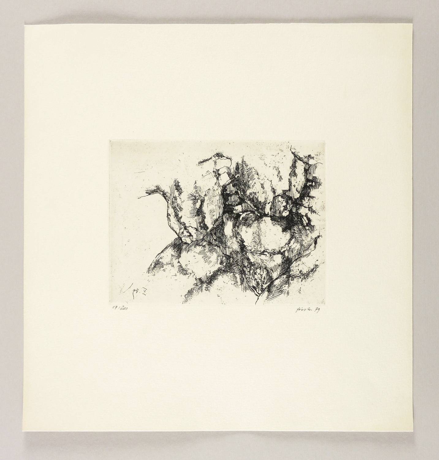1979. Radierung / Strichätzung, in Schwarz, auf genarbtem gelbem Velinkarton. – Originale Künstlergrafik, von Wieland Förster. – Auflage Exemplar Nr. 17/200. – 15,0 x 19,7 cm (Darstellung / Platte), 37 x 36 cm (Blatt).