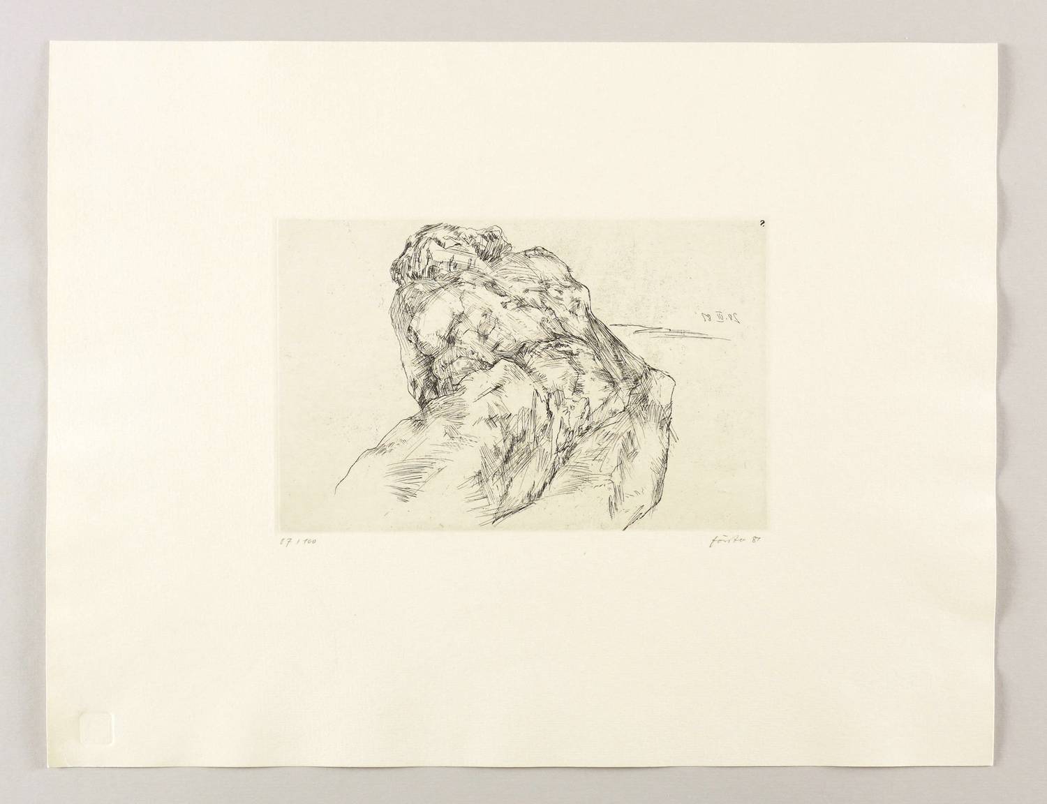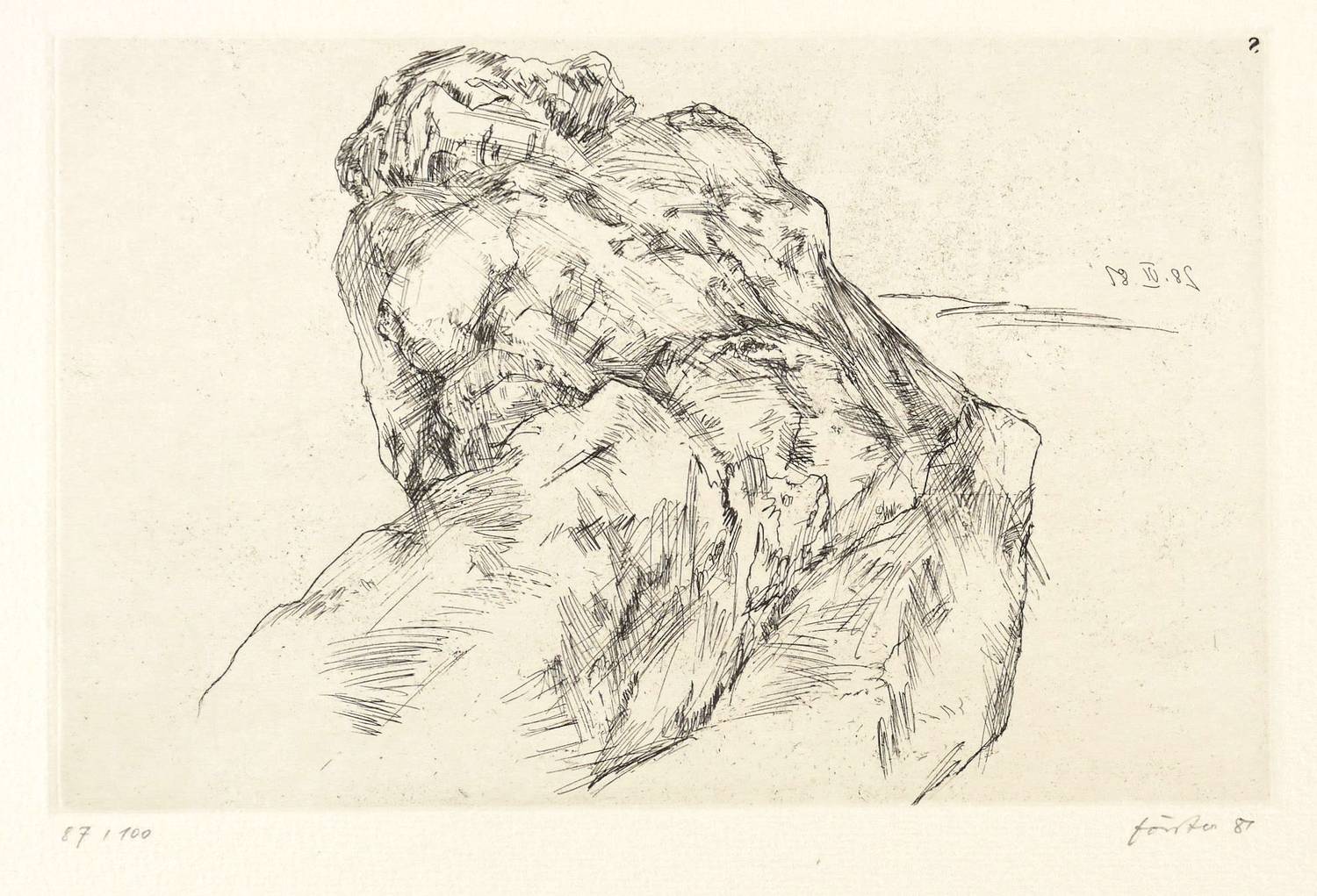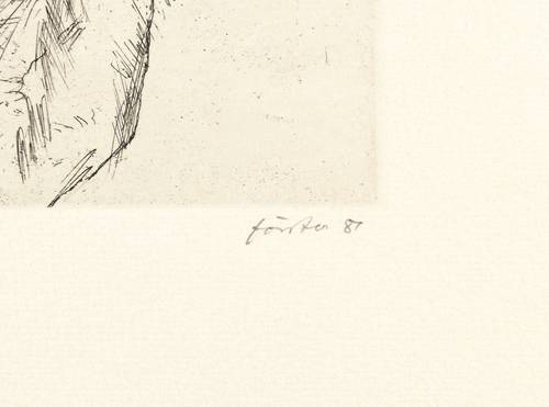 Rechts unten in Bleistift signiert und datiert: ″förster 81″. Links Auflagenbezeichnung. Trockenstempel der Grafik-Edition. In der Platte am rechten Rand oben spiegelverkehrt Datum: ″28. VI. 81″. – Sehr guter Zustand.