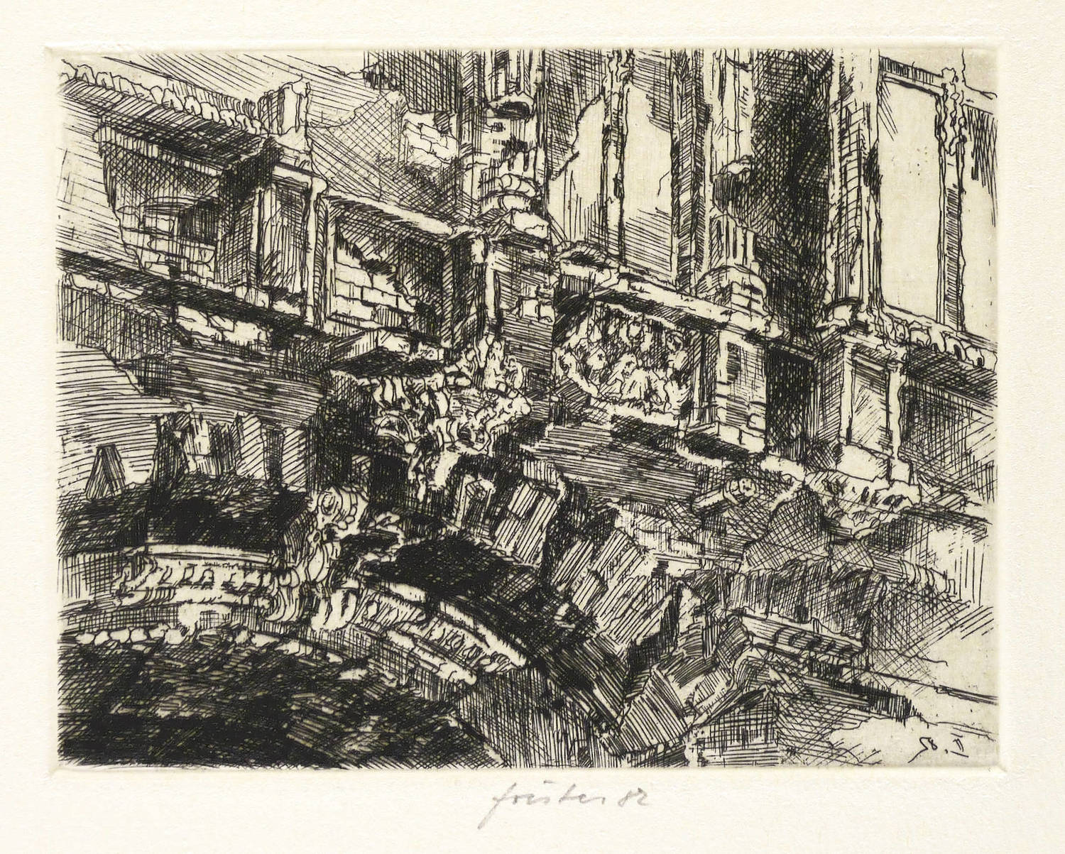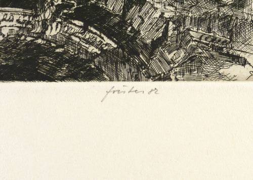 1982. Radierung / Strichätzung, in Schwarz, auf hellchamois Hahnemühle. – Originale Künstlergrafik, von Wieland Förster. – 12,3 x 16,0 cm (Darstellung / Platte), 40 x 31 cm (Blatt).