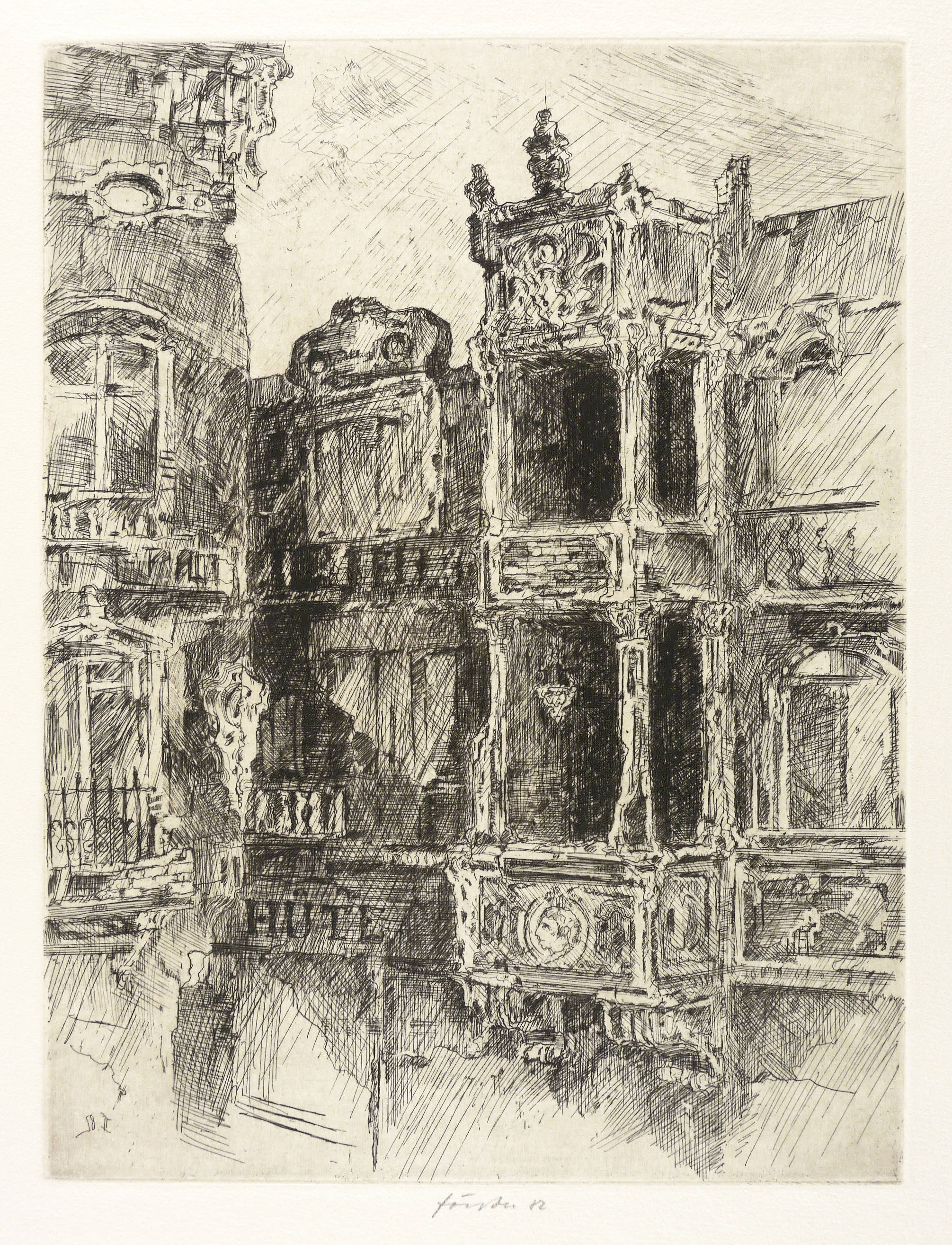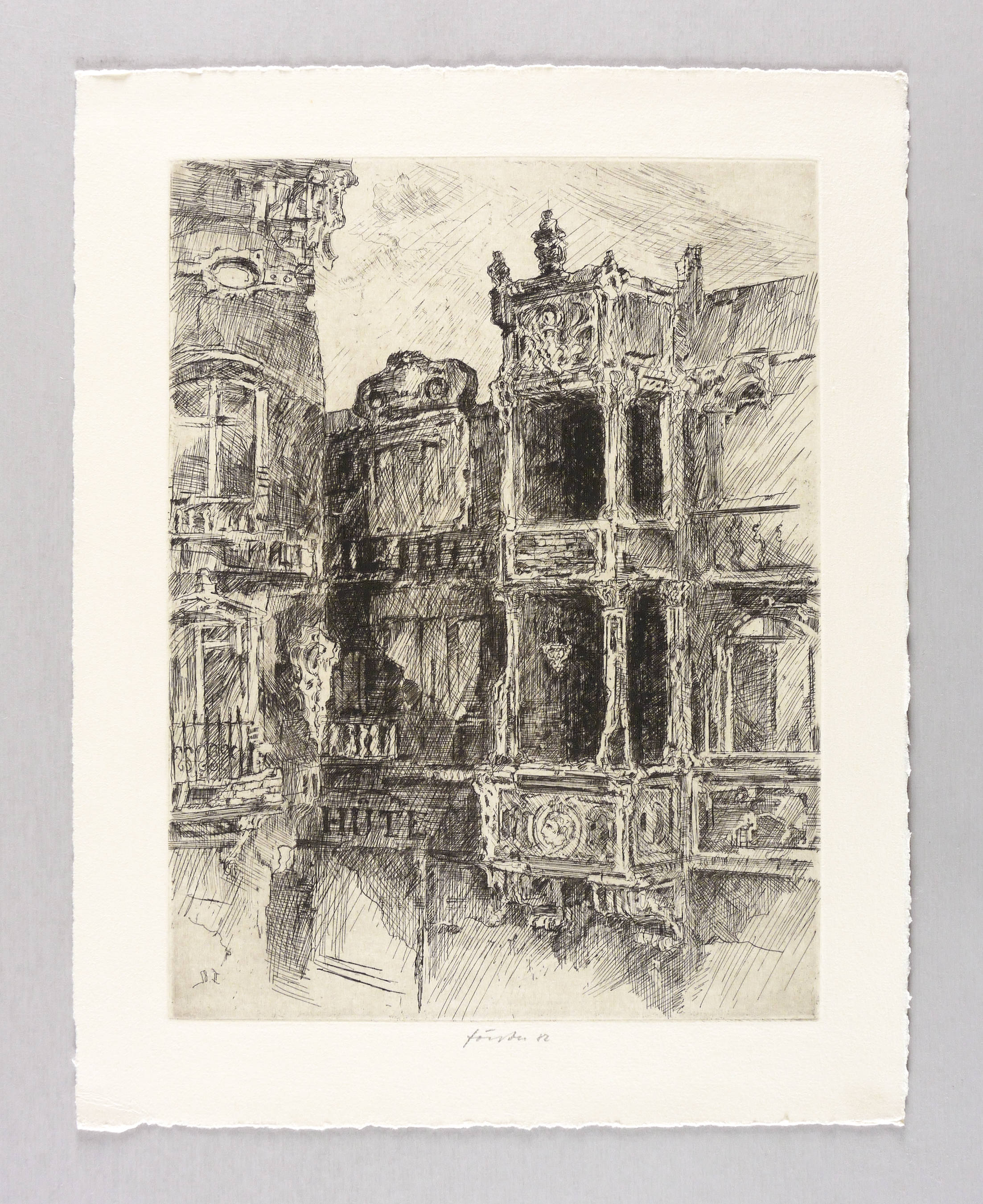 Aus: Wieland Förster, Von Häusern nebenan. Berlin, Prenzlauer Berg (Berlin: Akademie der Künste 1987). – Unterhalb in Bleistift signiert und datiert: ″förster 82″. In der Platte links unten Monogramm und Jahr. – Sehr gut erhalten.