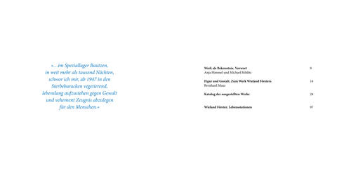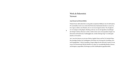 8°, Broschur, 104 S., 60 Abb. – Katalog zur Ausstellung ″Wieland Förster. Zeugnis ablegen für den Menschen″ in der Galerie Himmel in Dresden, 2. Juli - 10. September 2022. – Vorwort von Anja Himmel und Michael Böhlitz, Text von Bernhard Maaz. – Ausführlicher Katalog mit zahlreichen Werk-Abb. – Erstausgabe, neu.