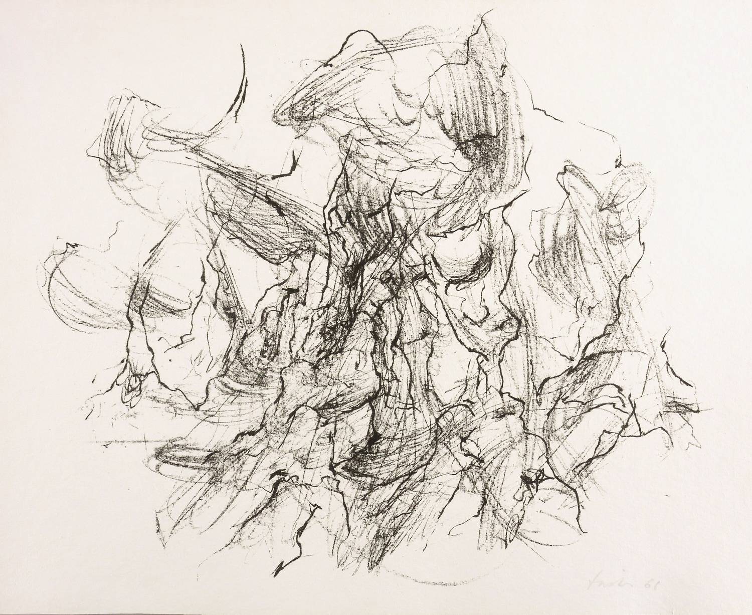 1968. Lithografie / Kreidelithografie, in Schwarz, auf weißlichem Velin. – Originale Künstlergrafik, von Wieland Förster. – 33,8 x 39,3 cm (Darstellung / Druckbild), 37 x 49 cm (Blatt).