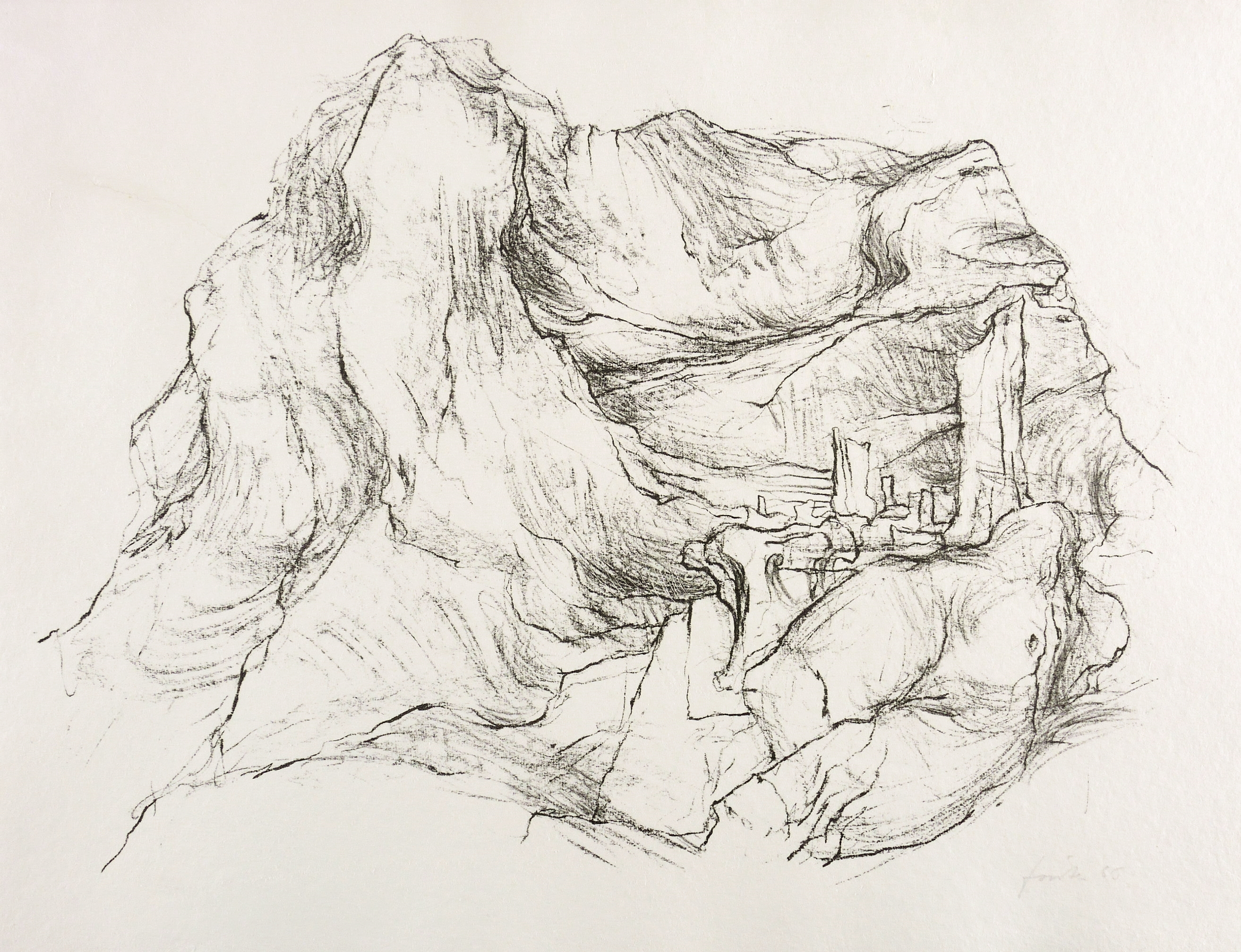 1968. Lithografie / Kreidelithografie, in Schwarz, auf weißlichem Velin. – Originale Künstlergrafik, von Wieland Förster. – 33,3 x 45,6 cm (Darstellung / Druckbild), 38 x 51 cm (Blatt).