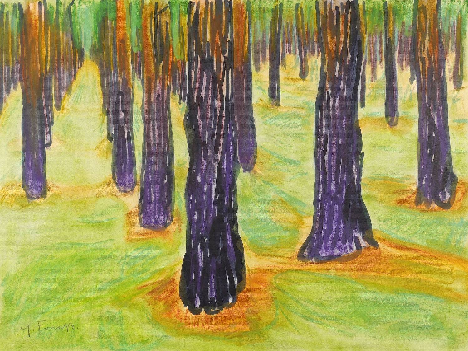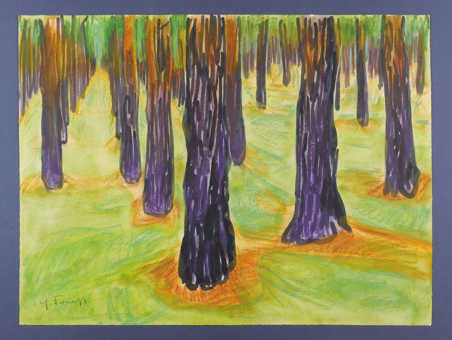 1936. Zeichnung / Mischtechnik, auf Bütten. – Originale Künstlergrafik, von Erich Fraaß. – Unikat. – 48,0 x 63,2 cm (Darstellung / Blatt).