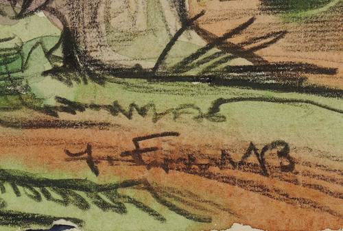 1938. Mischtechnik / Tusche & Aquarell, auf hellem Velin. – Originale Künstlergrafik, von Erich Fraaß. – Unikat. – 47,0 x 62,2 cm (Darstellung / Blatt).