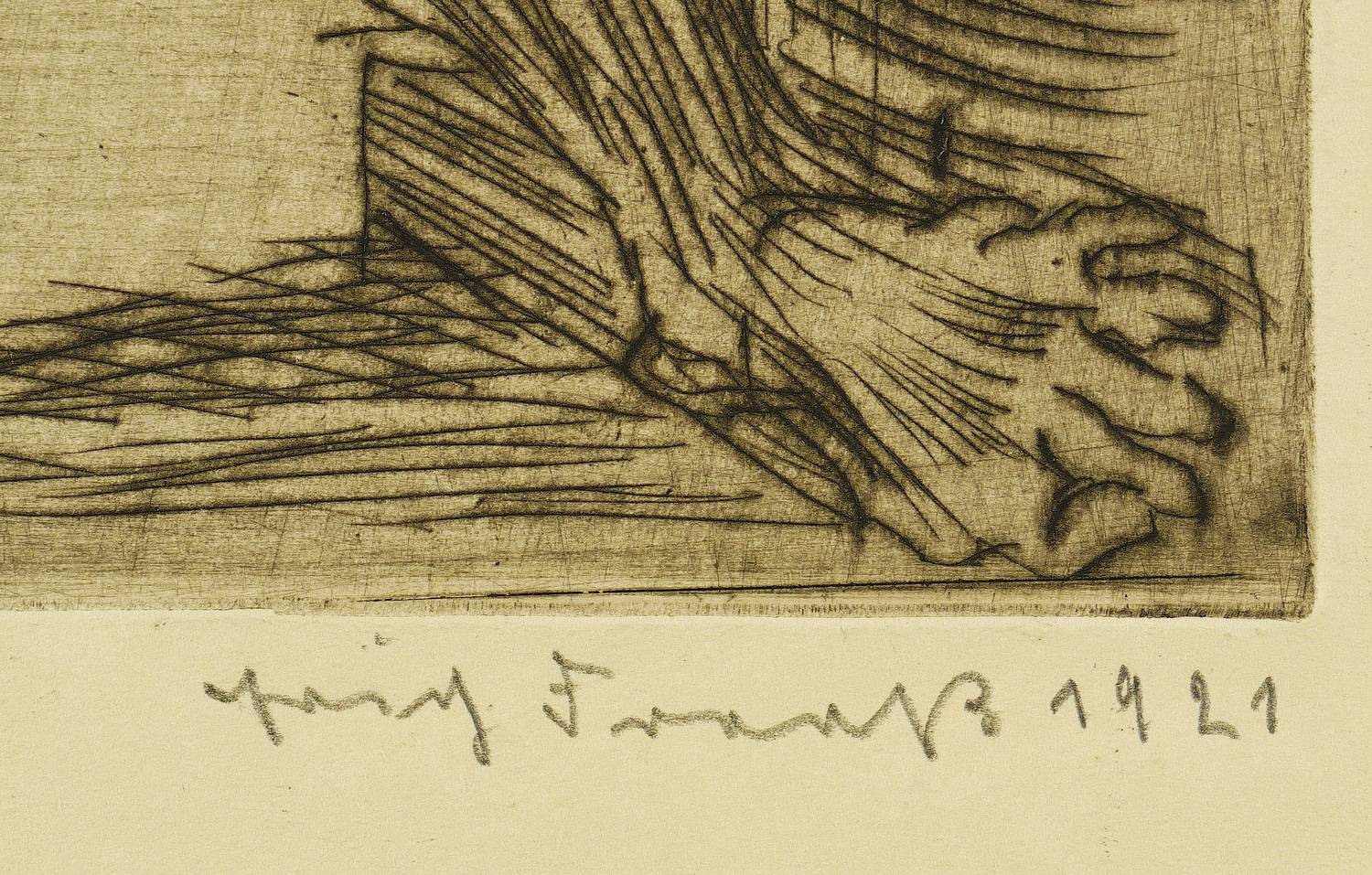 Rechts unter der Platte in Bleistift signiert und datiert. Mittig betitelt. Links dazu eigenhändige Auflagenbezeichnung. – Blatt insgesamt leicht gebräunt. Leichte Verschmutzungen außerhalb der Darstellung. Sonst guter Erhaltungszustand.