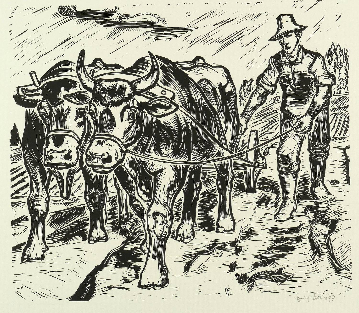Fraaß, Erich. – „Bauer mit Ochsenpflug”.