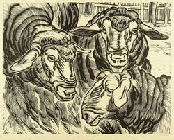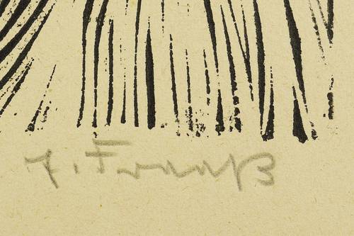 Um 1935. Linolschnitt, in Schwarz, auf hellgelbem Velin. – Originale Künstlergrafik, von Erich Fraaß. – 49,0 x 63,0 cm (Darstellung / Druckstock), 59 x 71 cm (Blatt).