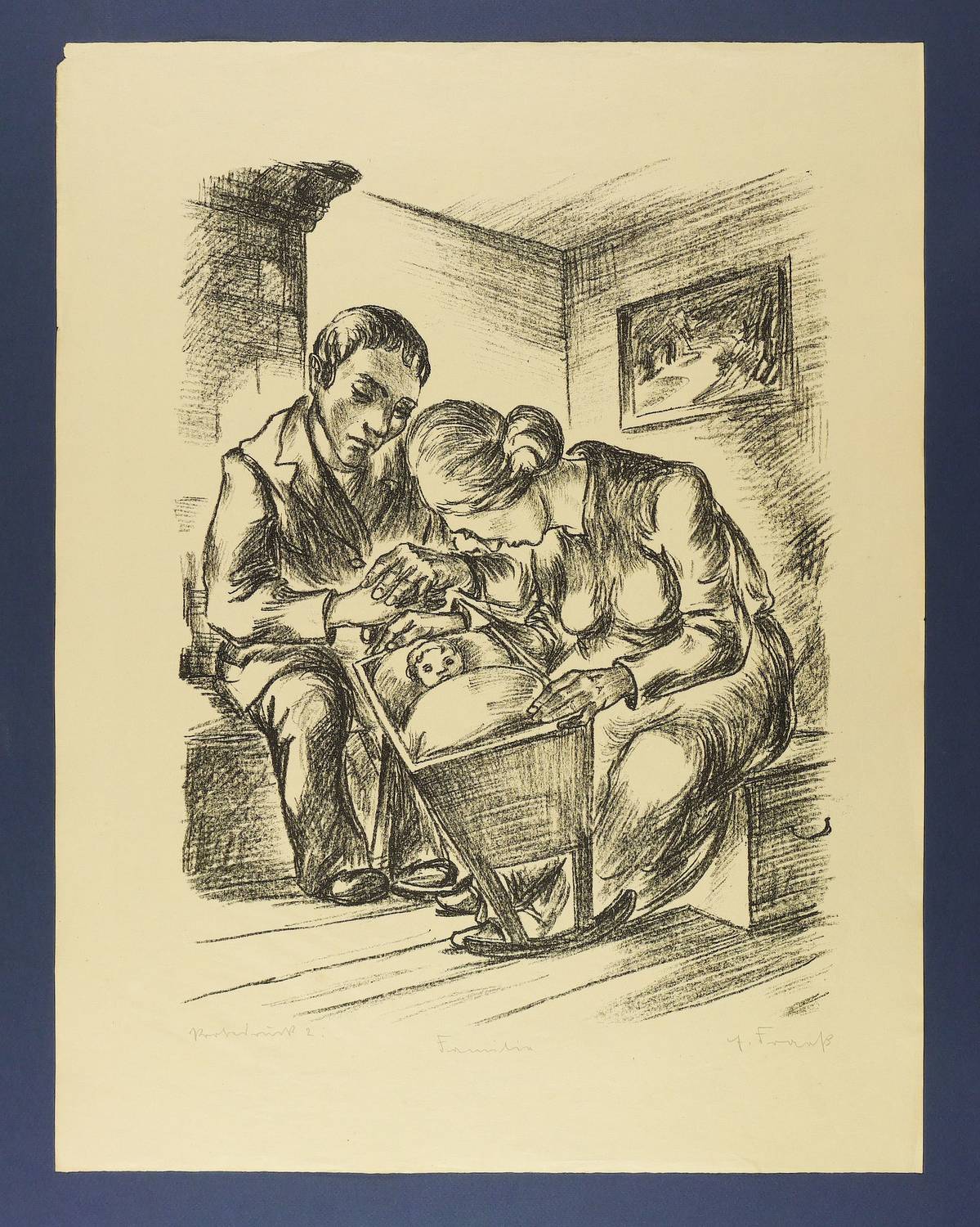 Rechts unten in Bleistift signiert. Mittig betitelt. Links dazu eigenhändige Auflagenbezeichnung. – Papier altersgemäß leicht gebräunt. Etwas knickspurig. Kleine Fehlstelle in der linken oberen Ecke. Sonst gut erhaltenes Exemplar.