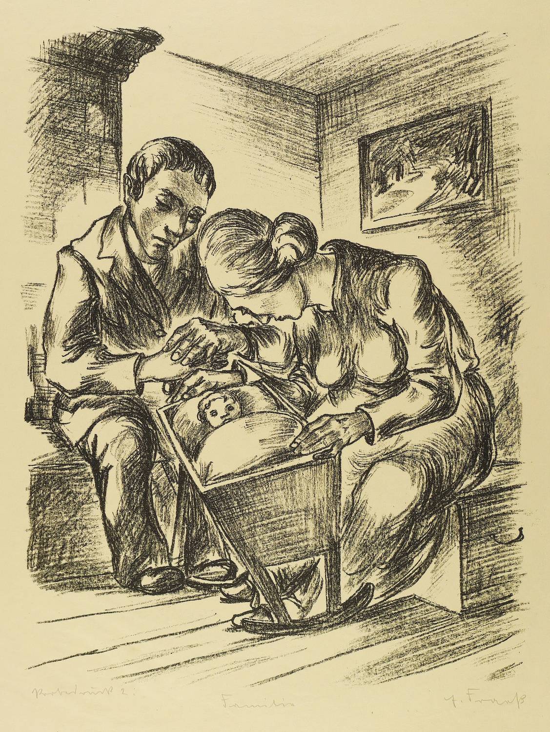 1920-1923. Lithografie / Kreidelithografie, in Schwarz, auf gelbem Velin. – Originale Künstlergrafik, von Erich Fraaß. – Probedruck Exemplar Nr. 2. – 50,0 x 39,0 cm (Darstellung / Stein), 65 x 50 cm (Blatt).
