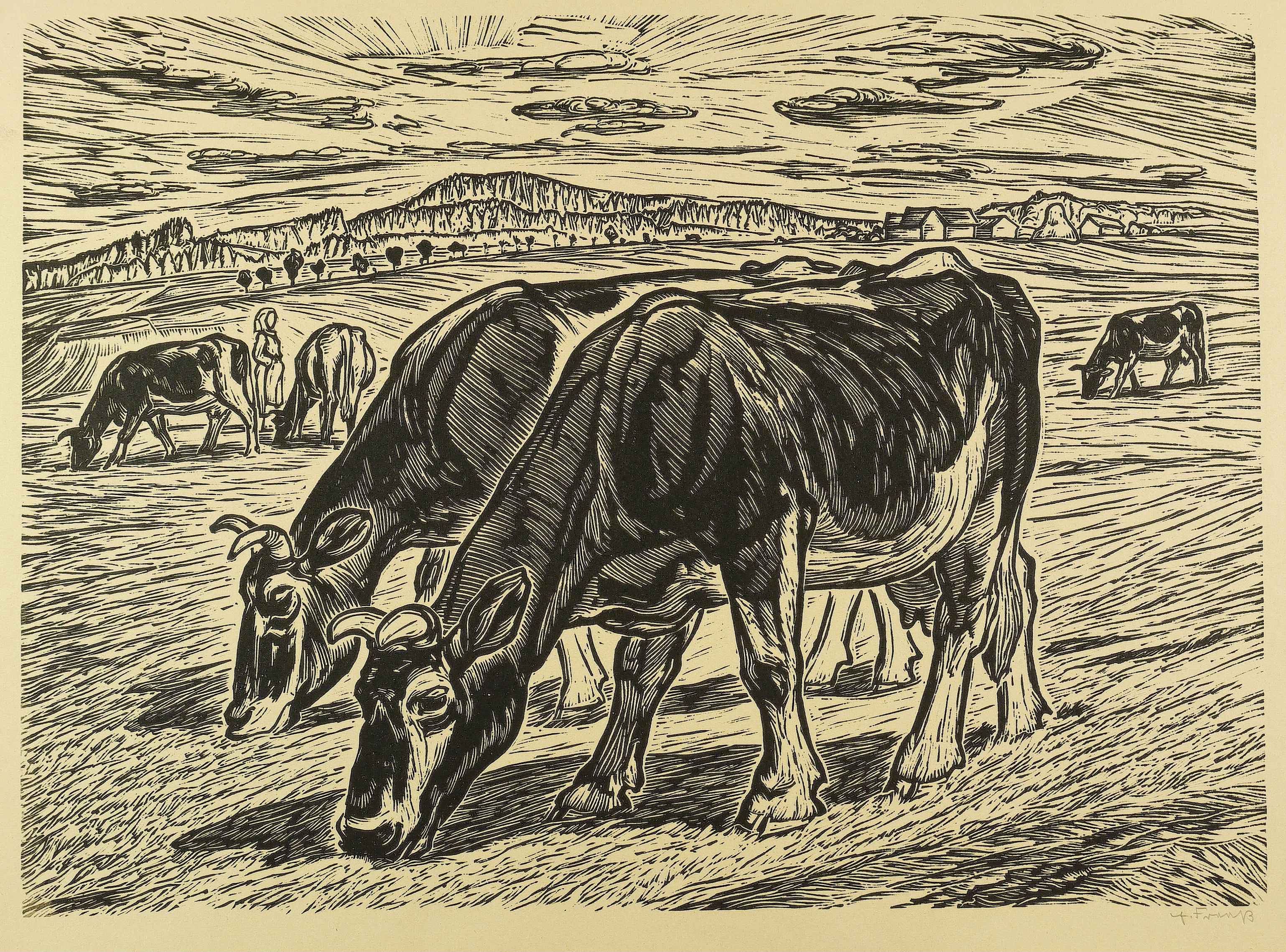 Fraaß, Erich. – „Kuhherde bei Grillenburg”.