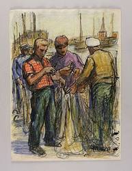 1955-1960. Zeichnung / Tusche & Farbkreide, auf starkem hellchamois Velin. – Originale Künstlergrafik, von Erich Fraaß. – Unikat. – 42,2 x 31,0 cm (Darstellung / Blatt).