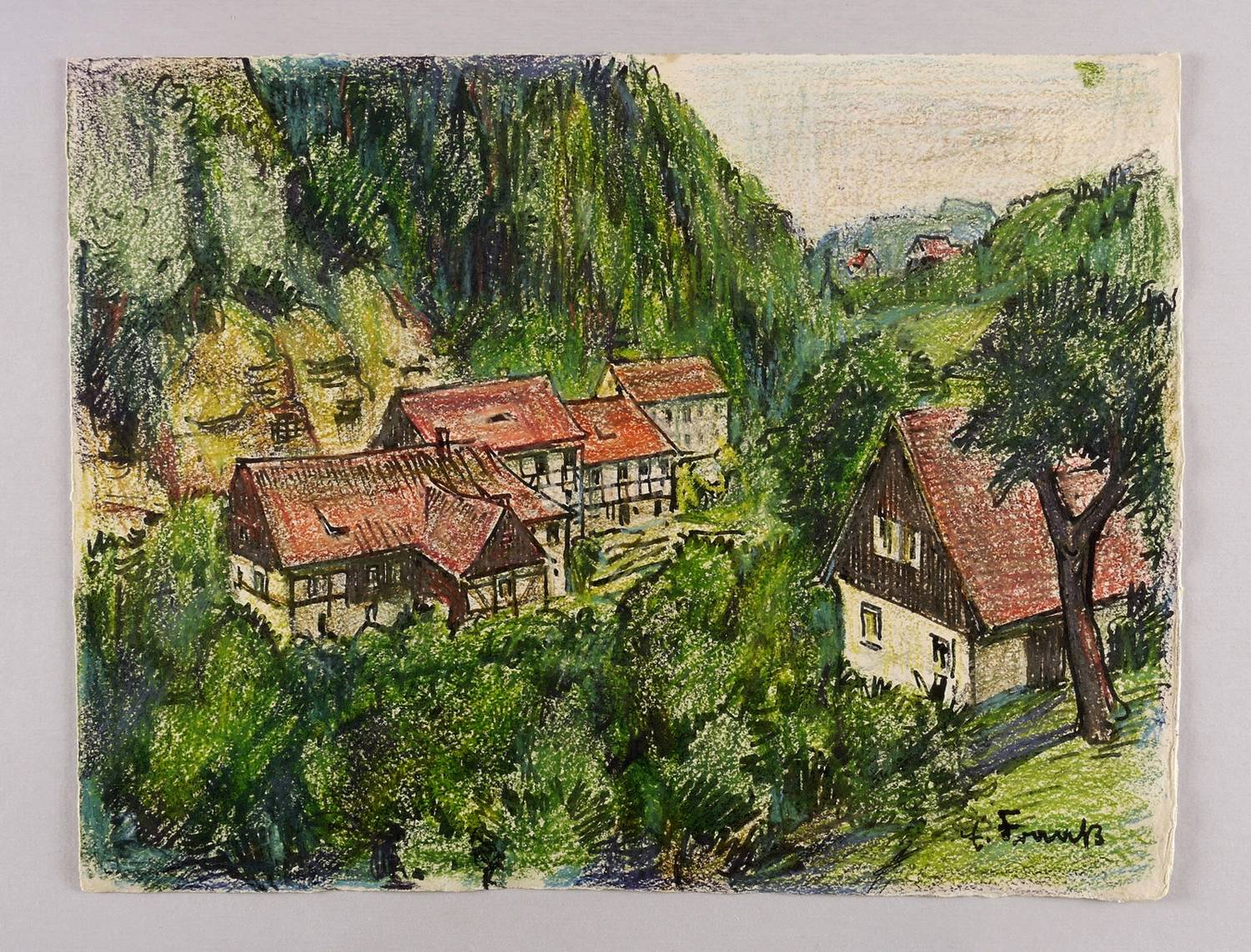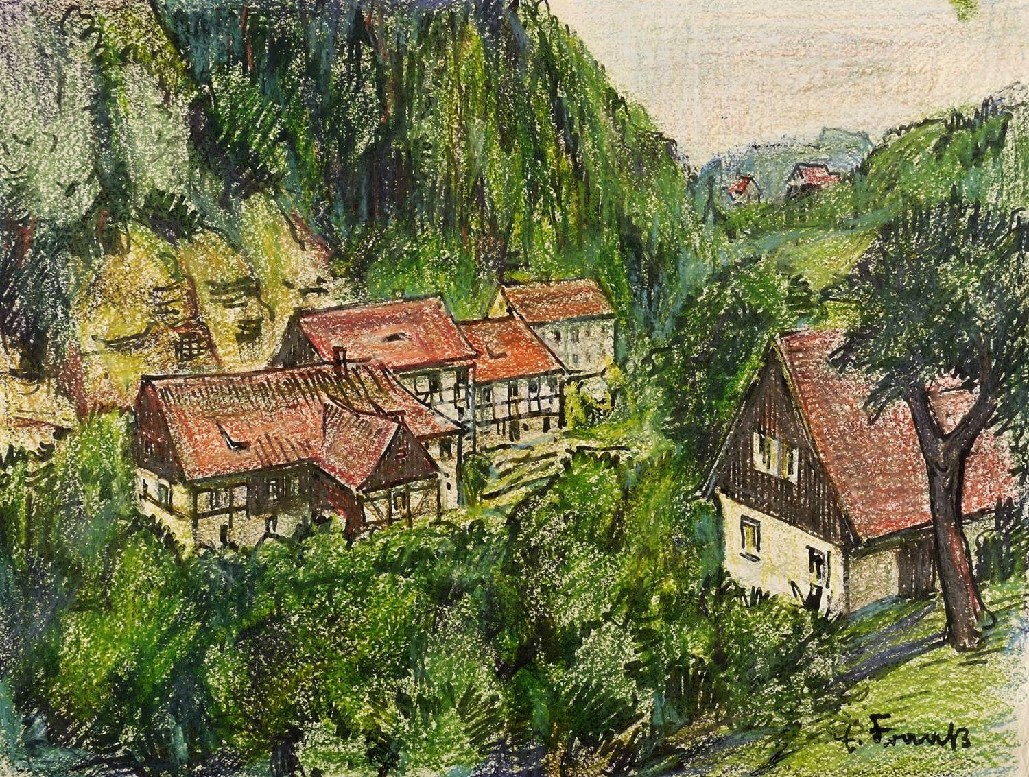 Rechts unten in schwarzer Tusche signiert: ″E. Fraaß″. Verso von fremder Hand bezeichnet: ″Schöna 1954″. – Sehr guter Zustand.
