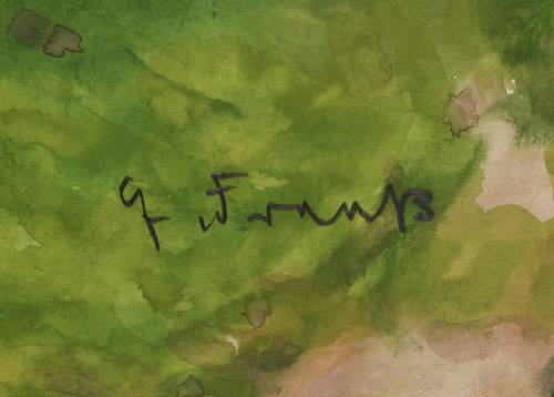1927. Zeichnung / Aquarell, mit zugesetztem Honig, auf leichtem gelblichem Velin. – Originale Künstlergrafik, von Erich Fraaß. – Unikat. – 39,4 x 49,3 cm (Darstellung / Blatt).